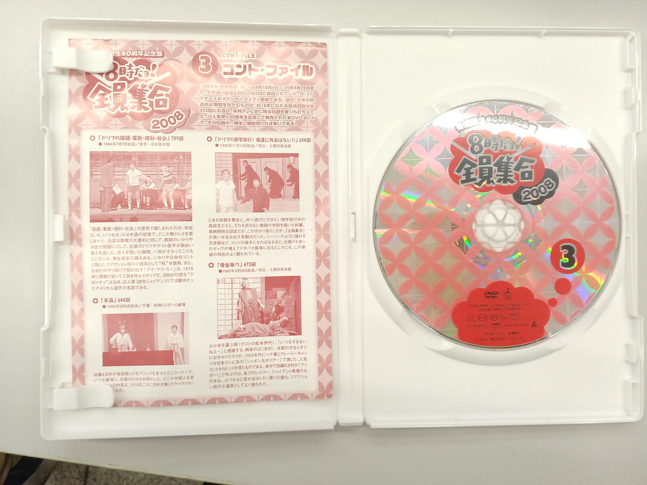 1969~85年までTBS系で放送された国民的バラエティ番組『8時だヨ!全員集合』を、完全収録するシリーズの第3弾。ブームを巻き起こしたコントの数々、老若男女に愛された名台詞などが満載。 |