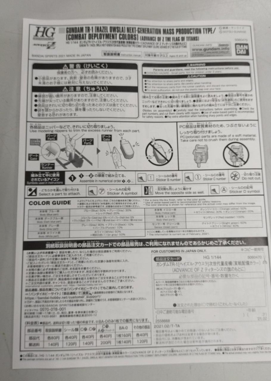化粧箱、各種未開封パーツ、取扱説明書 |