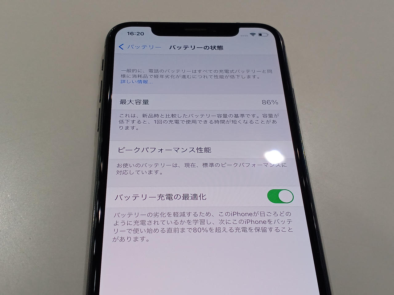 バッテリー最大容量:86% |