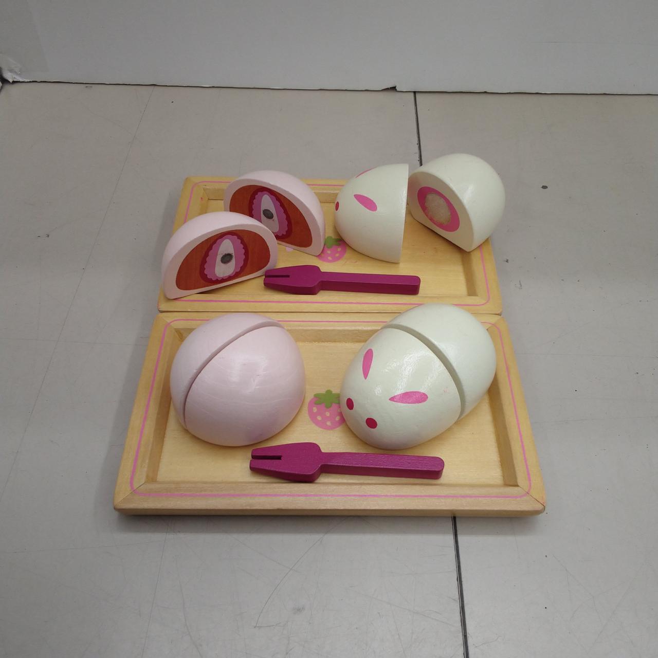 マジックテープや磁石でくっつけたり、切り分けたりできる遊びやすい木製の一品です。