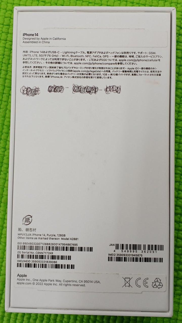 IOS:18.4.1 CPU:APPLE A15 ストレージ:128GB バッテリー最大容量:94% |