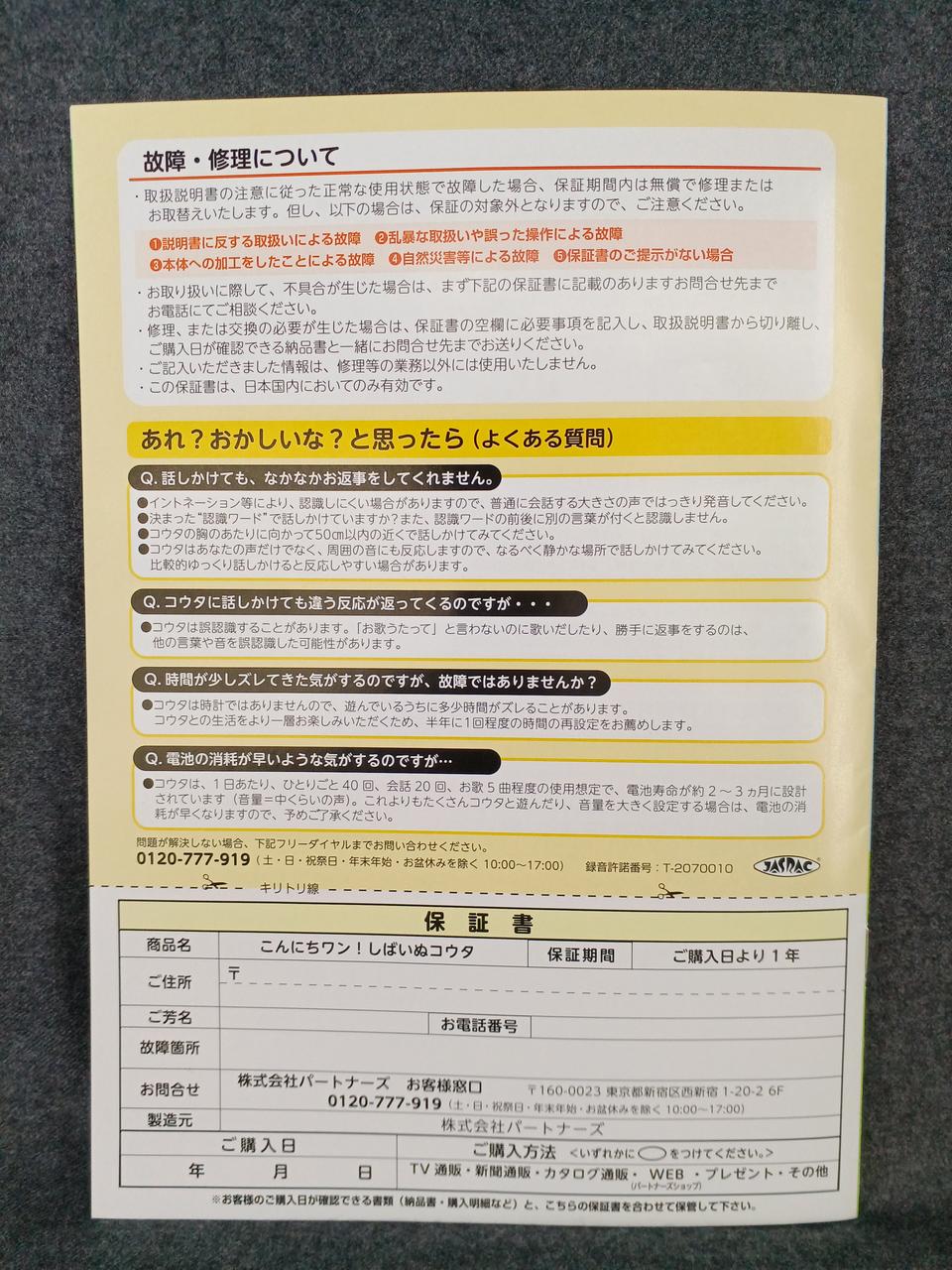 TEL:048-790-3111| 保証期間 | 保証なし |