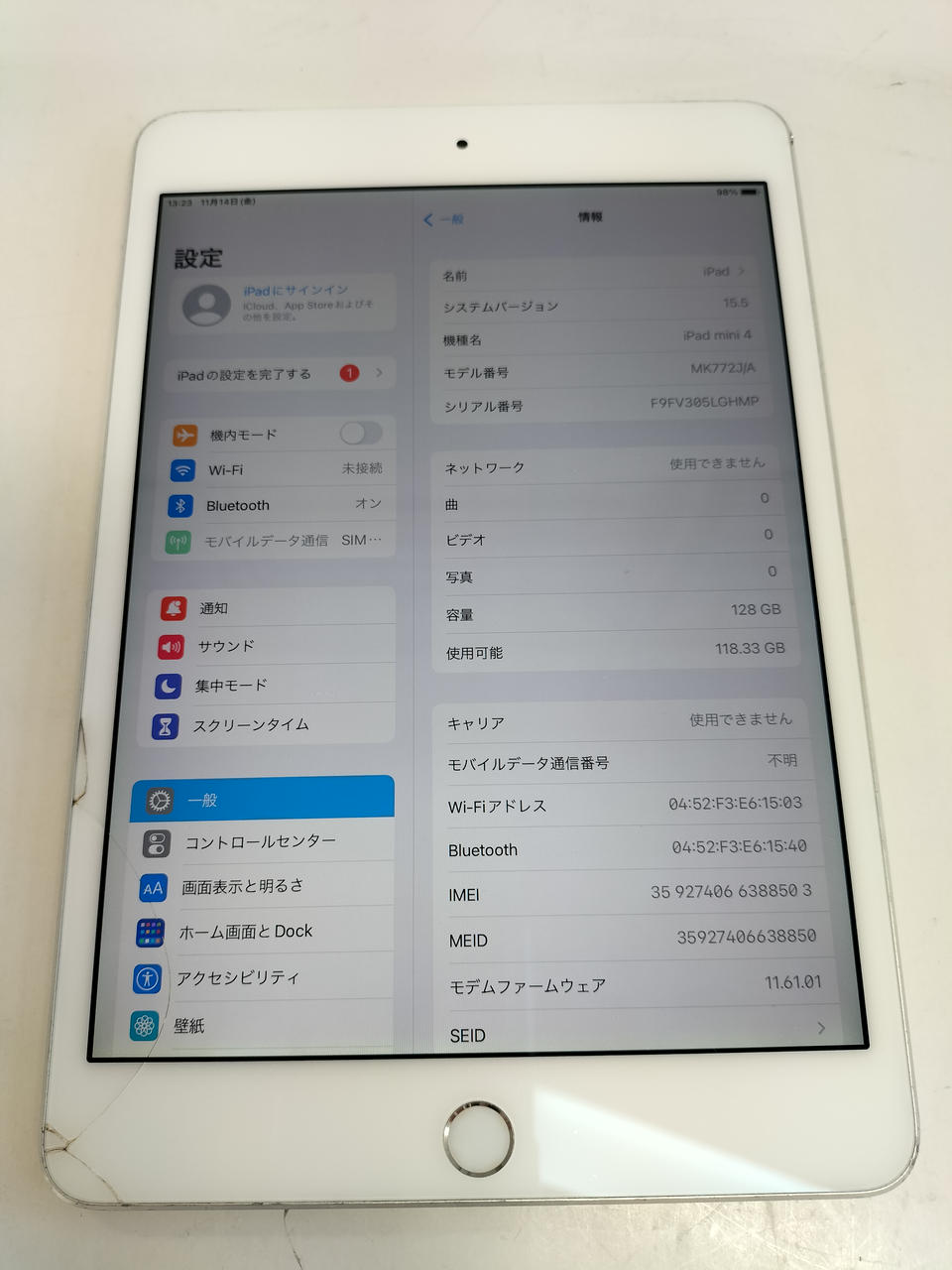 Wi-Fi+Cellulariモデル(SoftBank) OS:iOS15.5 ROM:128GB |