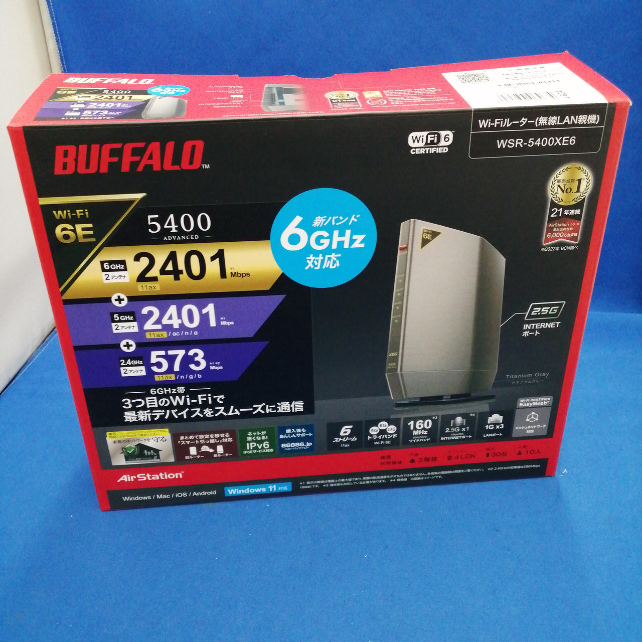 6GHZ/5GHZ/2.4GHZの3つの周波数帯に対応した、WI-FI 6E対応ルーター |
