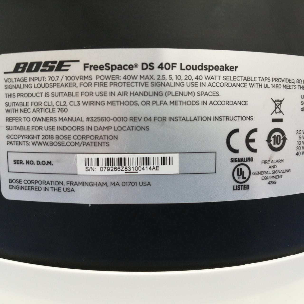 許容入力(連続):40 W(160 W PEAK) インピーダンス:82 |