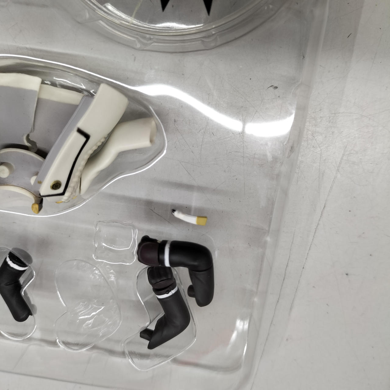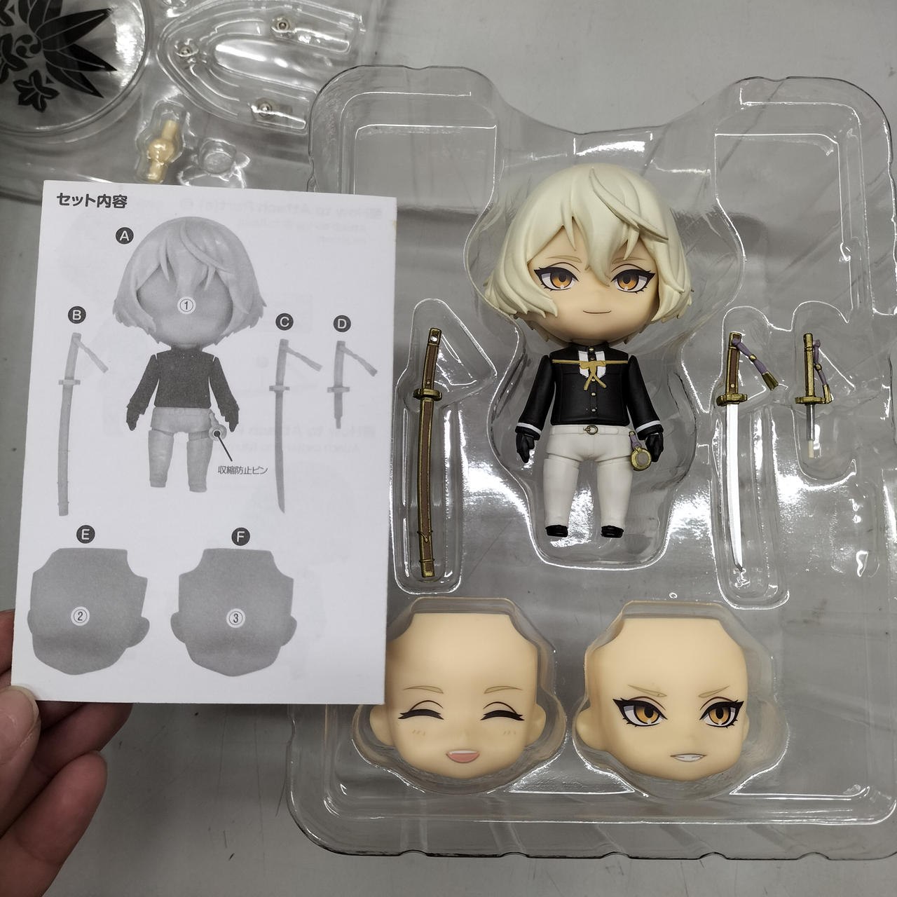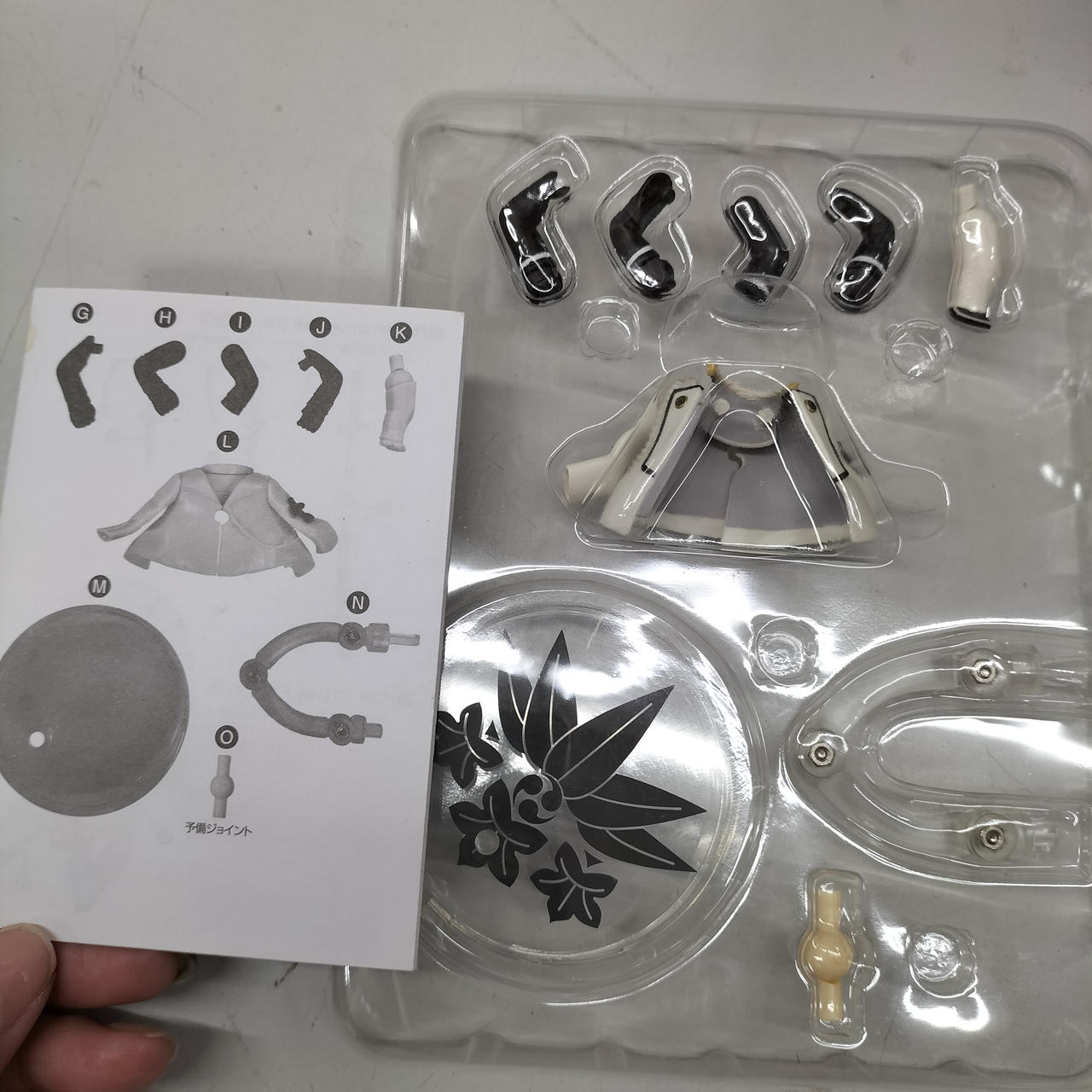 刀のにつけるふさふさが三個あるうち一つ欠品しております。取り外しができるので、取らせたいポーズで使わなかった刀パーツから取れば代用はできます。 |