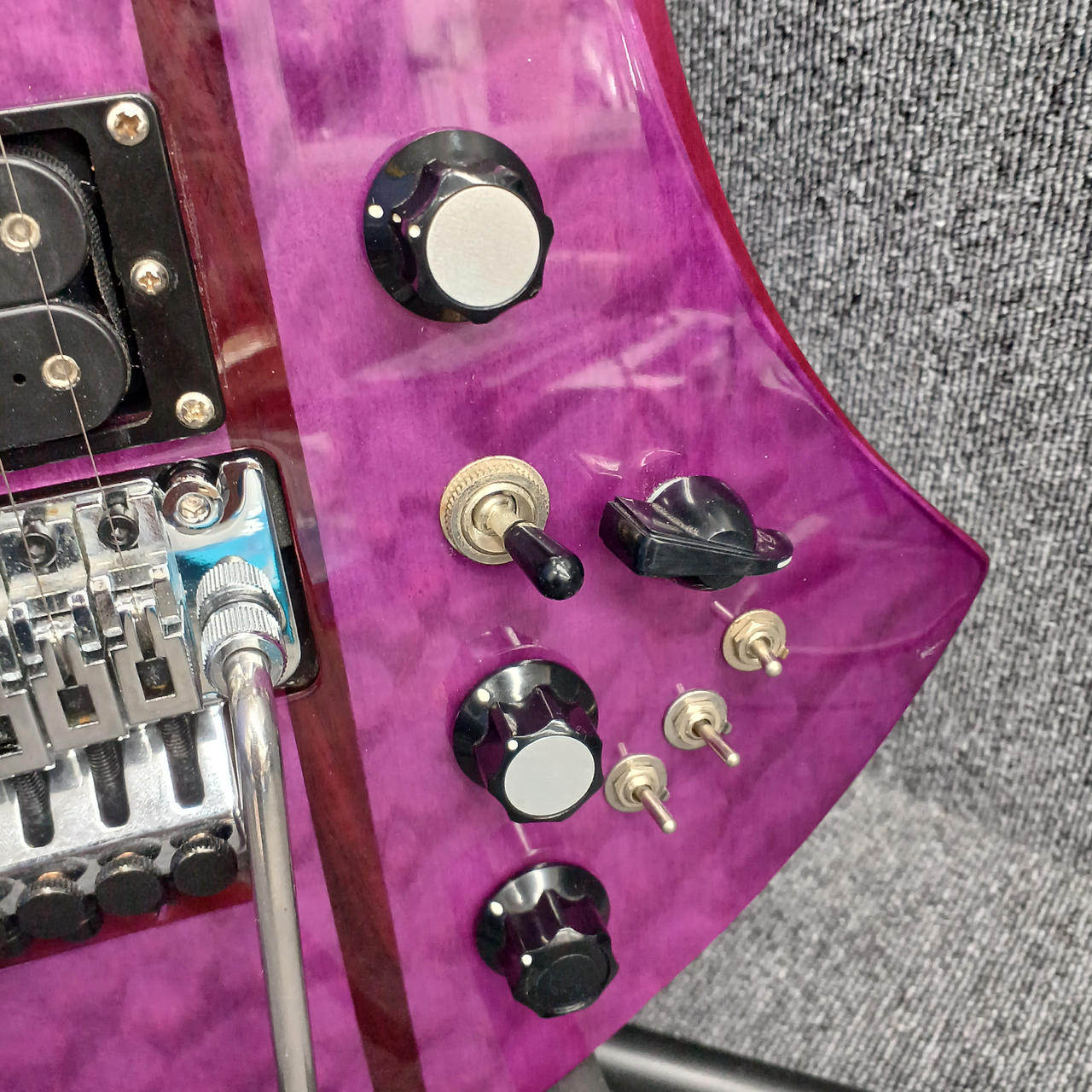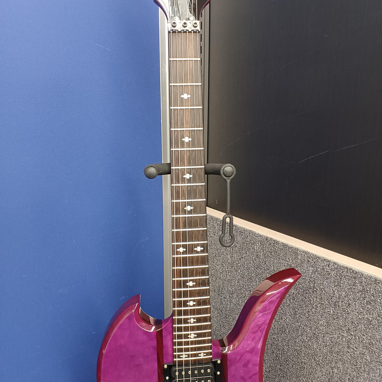 ネックスルー構造とジャンボフレットにより、ハイポジションでのスムーズな演奏性も◎な一本 |