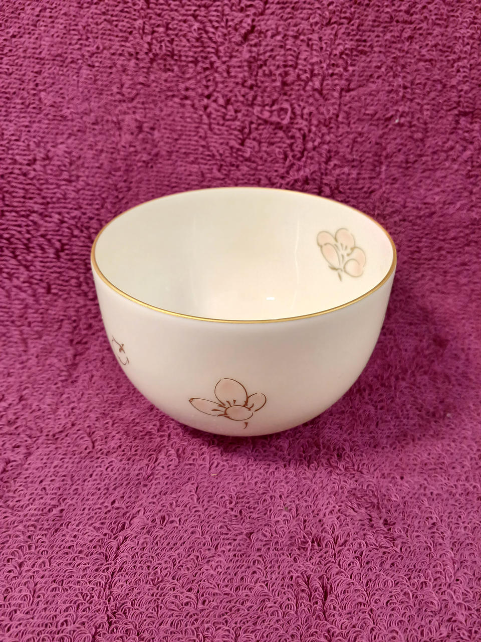 淡いピンク色の小梅の花柄と金彩縁取りが特徴のデザインです。
