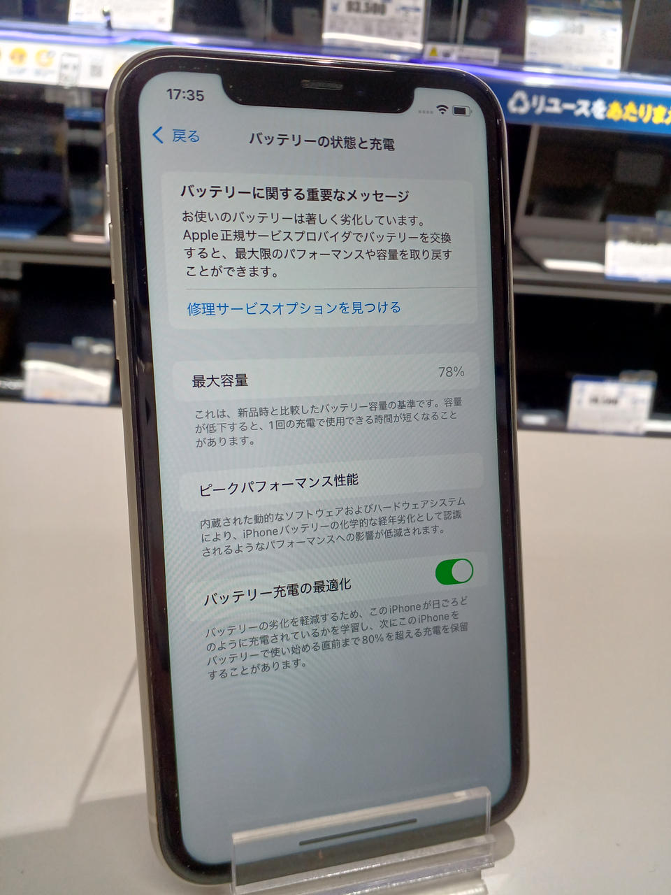 バッテリー最大容量78% |