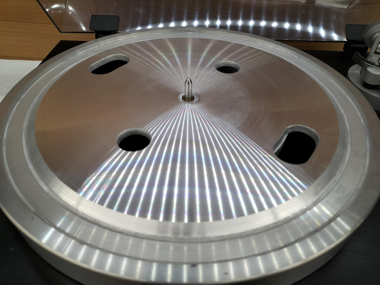 ターンテーブルには直径360MMで自重3KGの30MM厚アルミダイカスト製ターンテーブルを採用 |