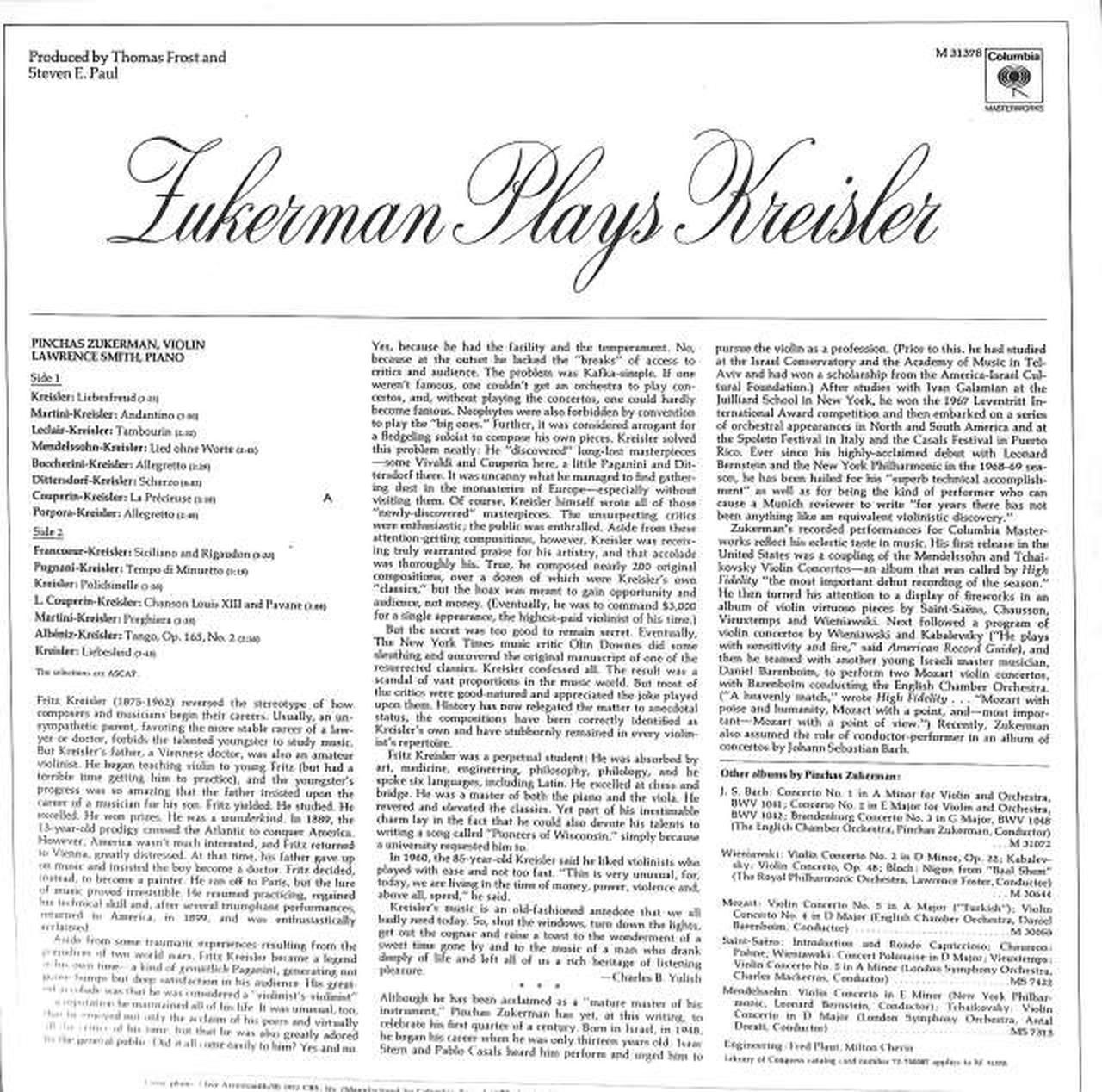 ピンカス・ズーカーマン(Vn)ローレンス・スミス(Pf) |