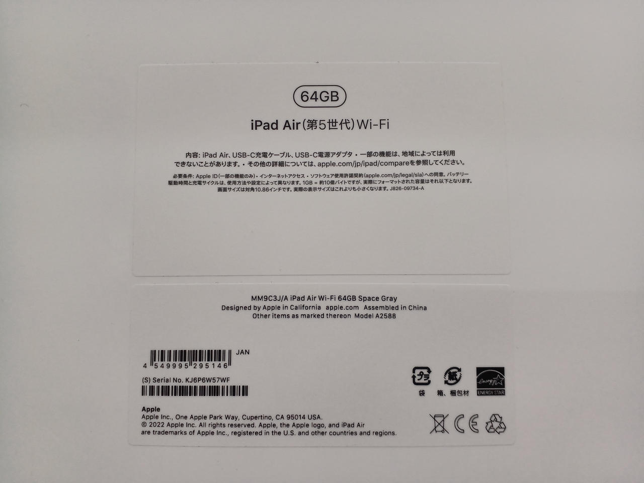 Wi-Fiモデル 10.9インチ(2360x1640) 64GB IOS:26.1 |