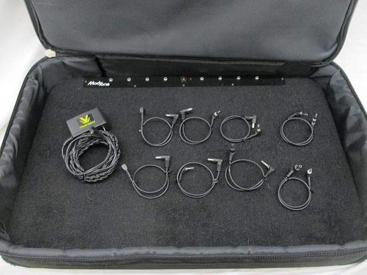 ソフトケース(ポケットのファスナーの取手破損あり)、DCケーブル×8(内1本ミニプラグ仕様)、電源アダプター付属。 |