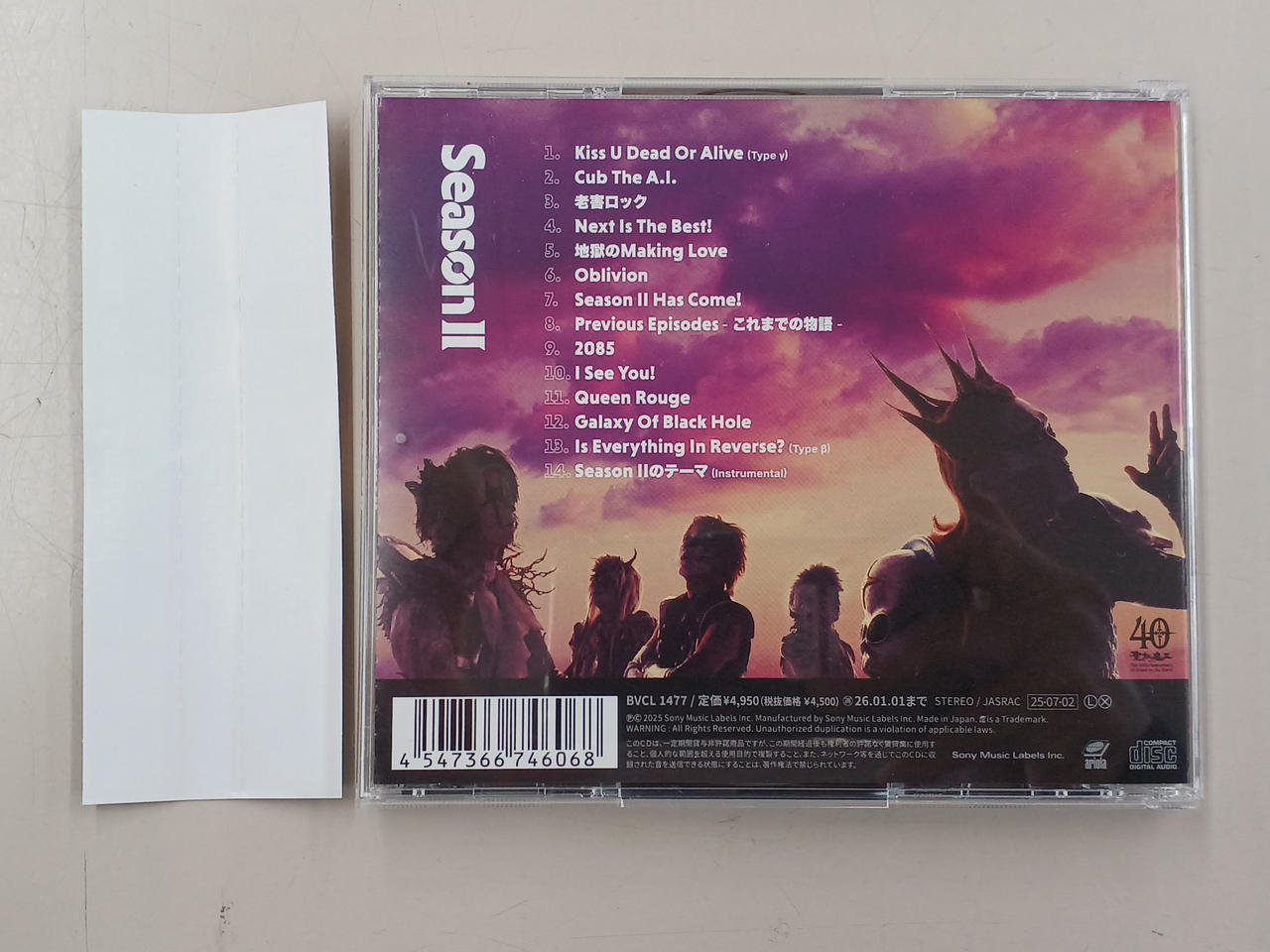 新譜大教典『Season II』発布決定!!前作の『BLOODIEST』は解散後に発布した初めての新譜大教典だったが、期間限定再集結の構成員だけでは作っていなかった。しかし今回、多くの構成員が「今の構成員だけで作りたい」という暗黙の認識が全員に芽生えた。35周年の時にはコロナ禍を約3年間活動したことによりこの構成員によるバンドとしての一体感が生まれたという地球デビュー当時に近い感じであり、気持ちは新しいバンド。最初に世の中に出るデビューアルバムだから誰もがテンションは上がるし、丁寧に作るものだろうそんな思いを込めて『Season II』は世に送り出される。 (C)RS |