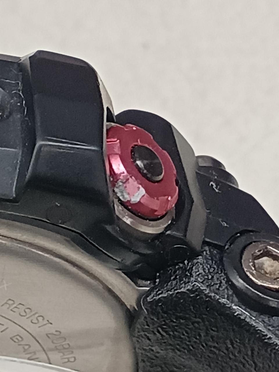目立つ使用感は見受けられませんが赤いボタン部分に傷?のような物が見受けられます。付属品は箱と説明書になります。 |