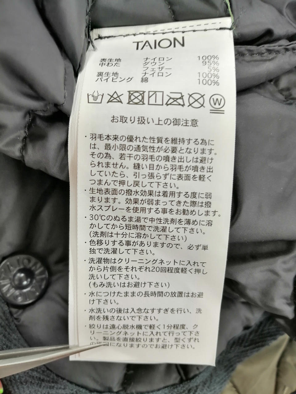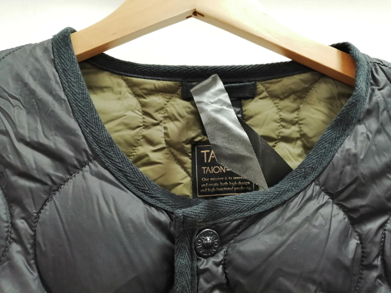 タイオン ノーカラーキルティングダウンジャケットです。 |