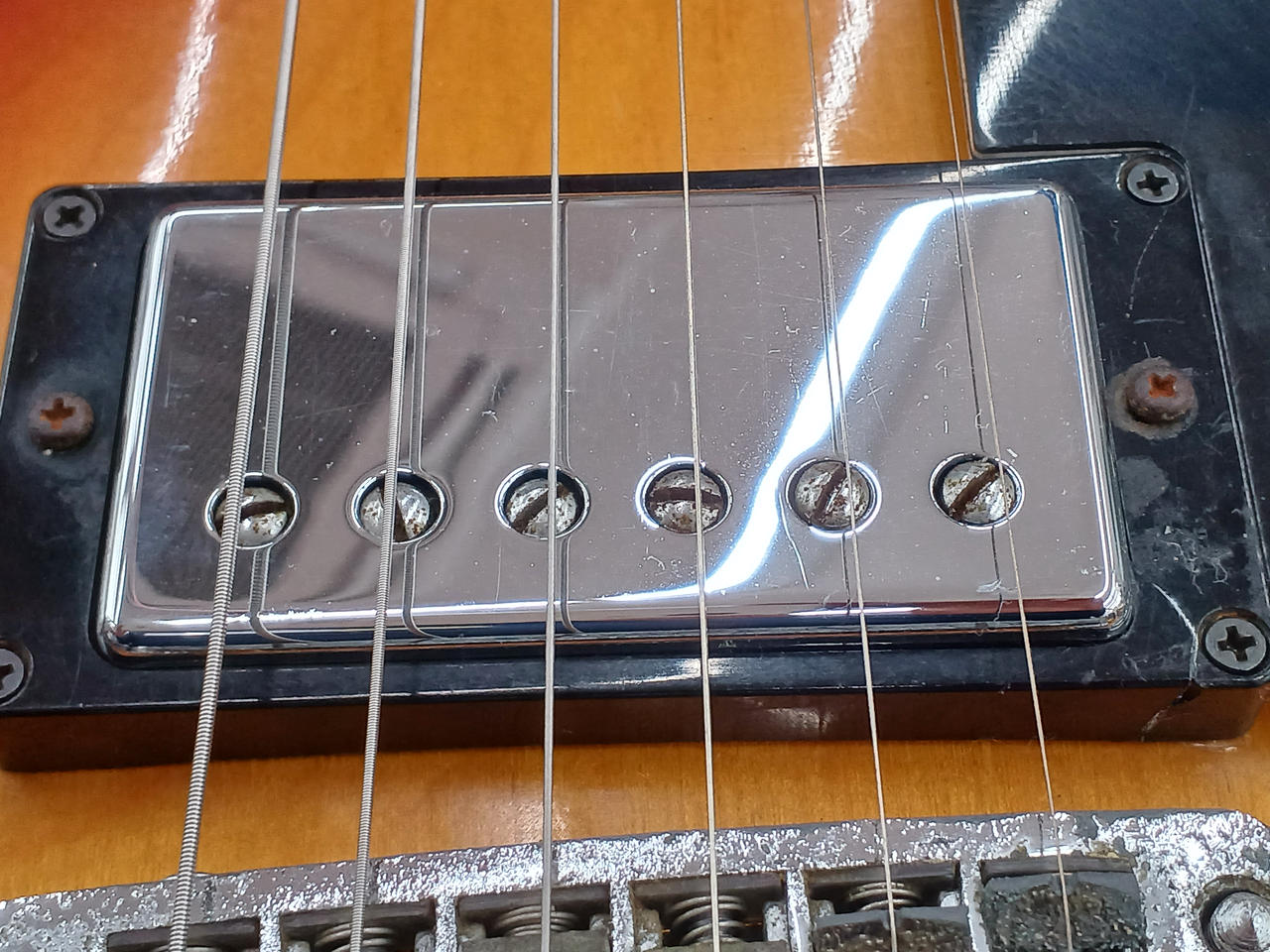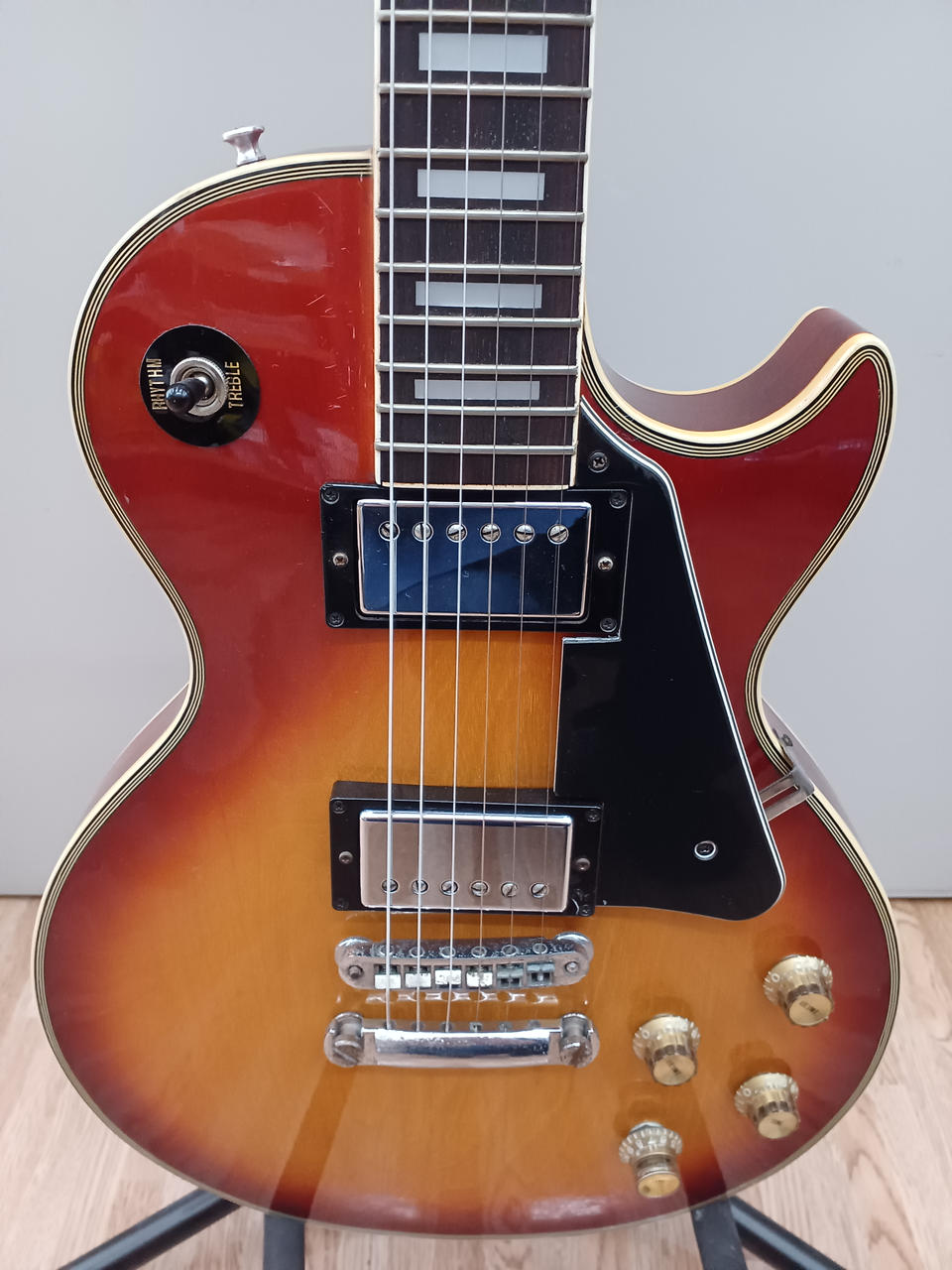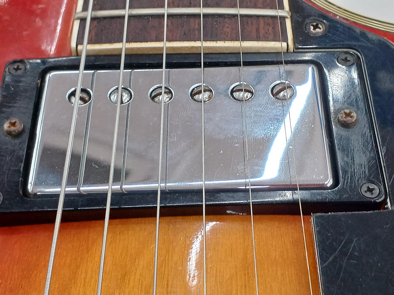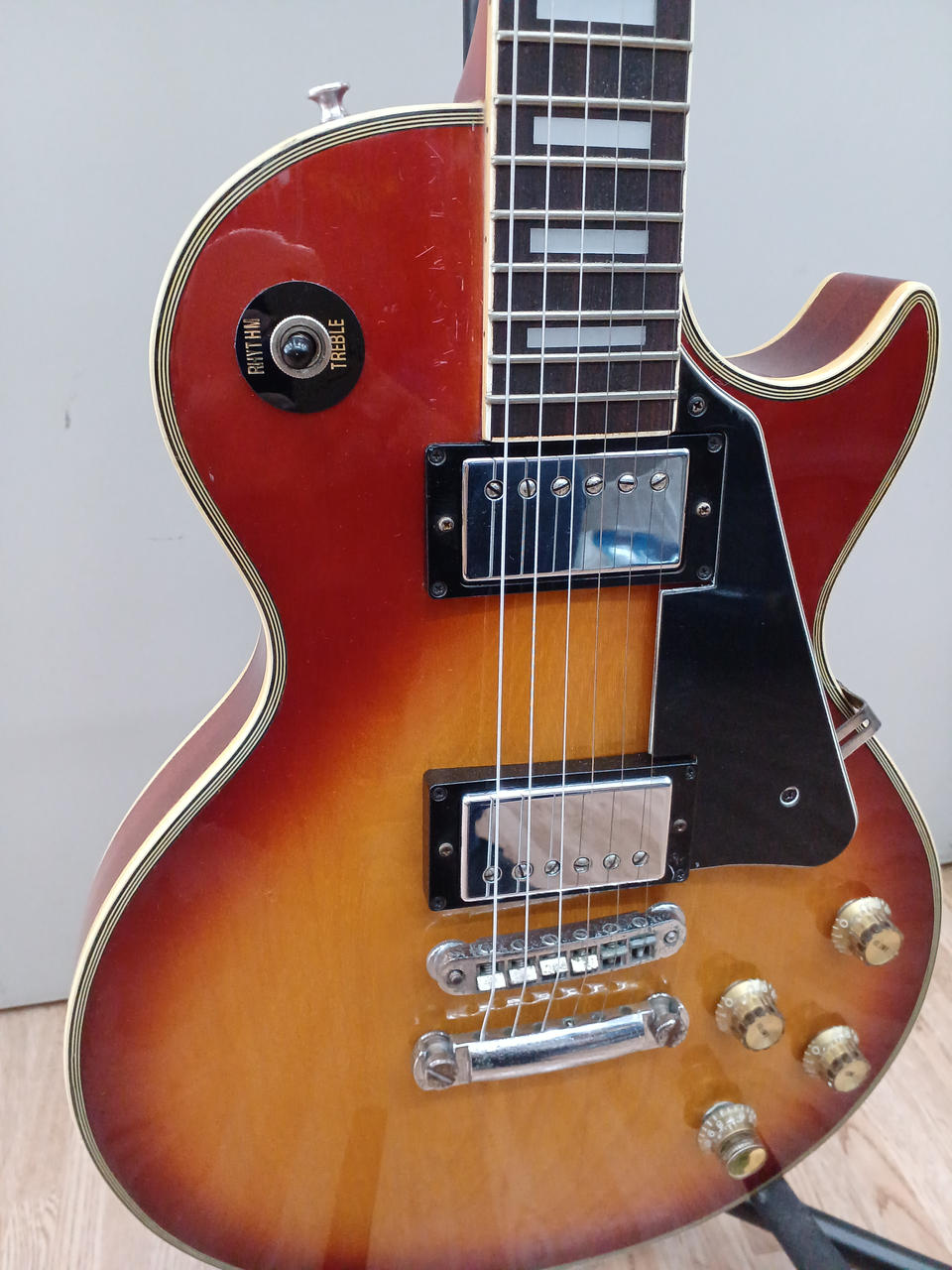 型番やシリアル番号が見当たりませんEG500や600のレスポールカスタムに似ています出音○ 詳細不明のためジャンク品です※返品返金交換不可です