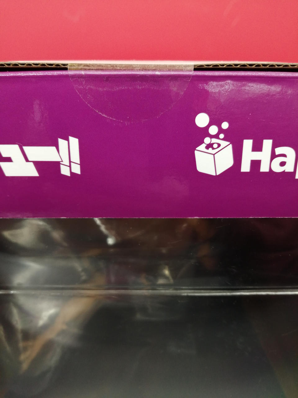 箱正面のフィルムの端が剥がれています。 |