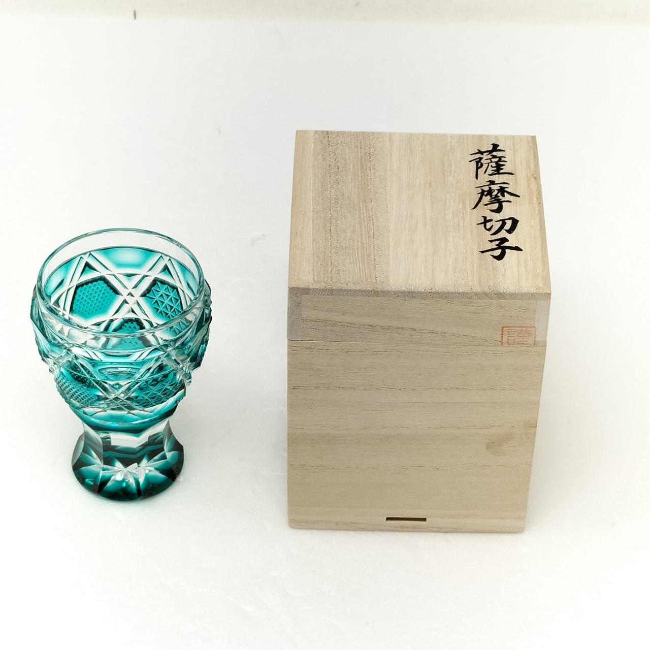 直径5cm 高さ8.2cm。色はグリーン。 柄が綺麗な馬上杯です。箱有り。 |