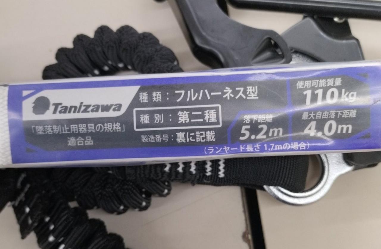 種類:フルハーネス型 使用可能質量:110kg 落下距離:5.2m 最大自由落下距離:4.0m |