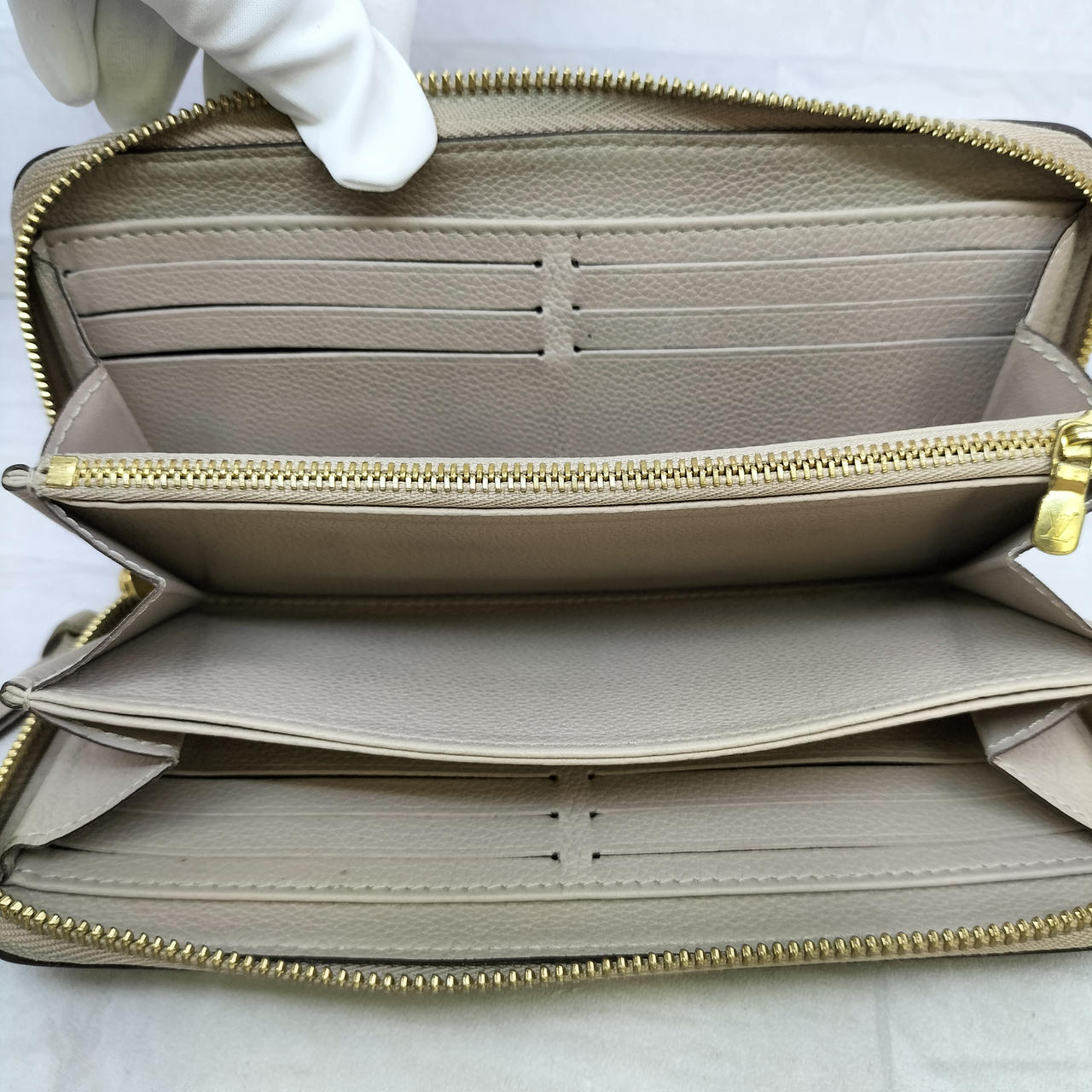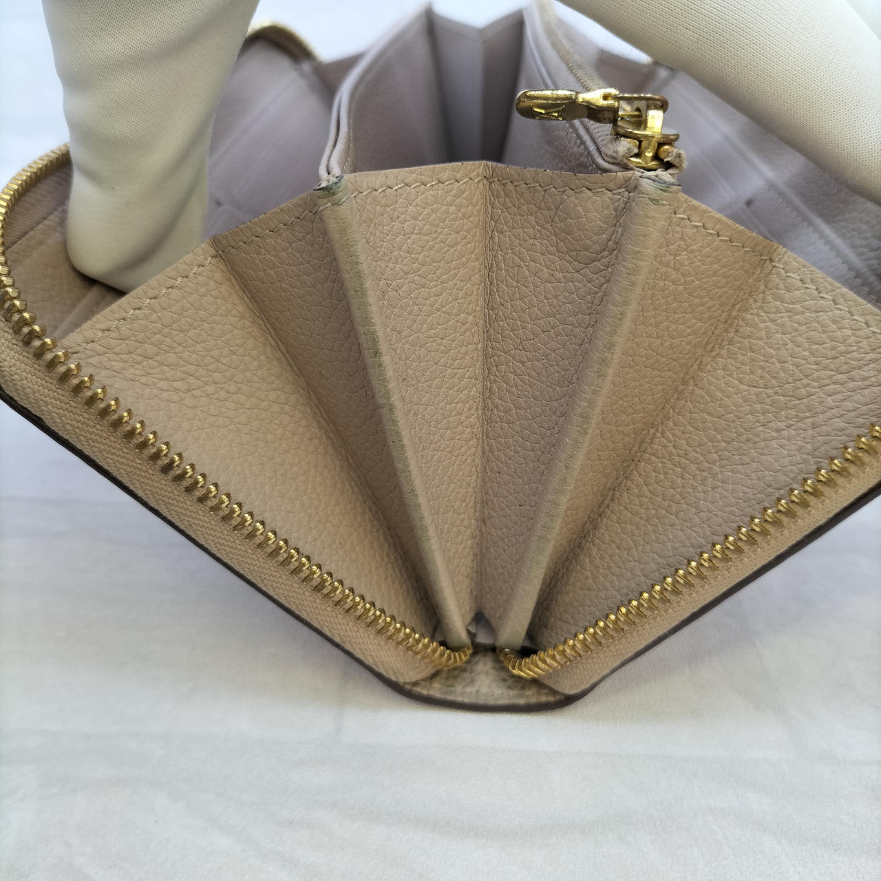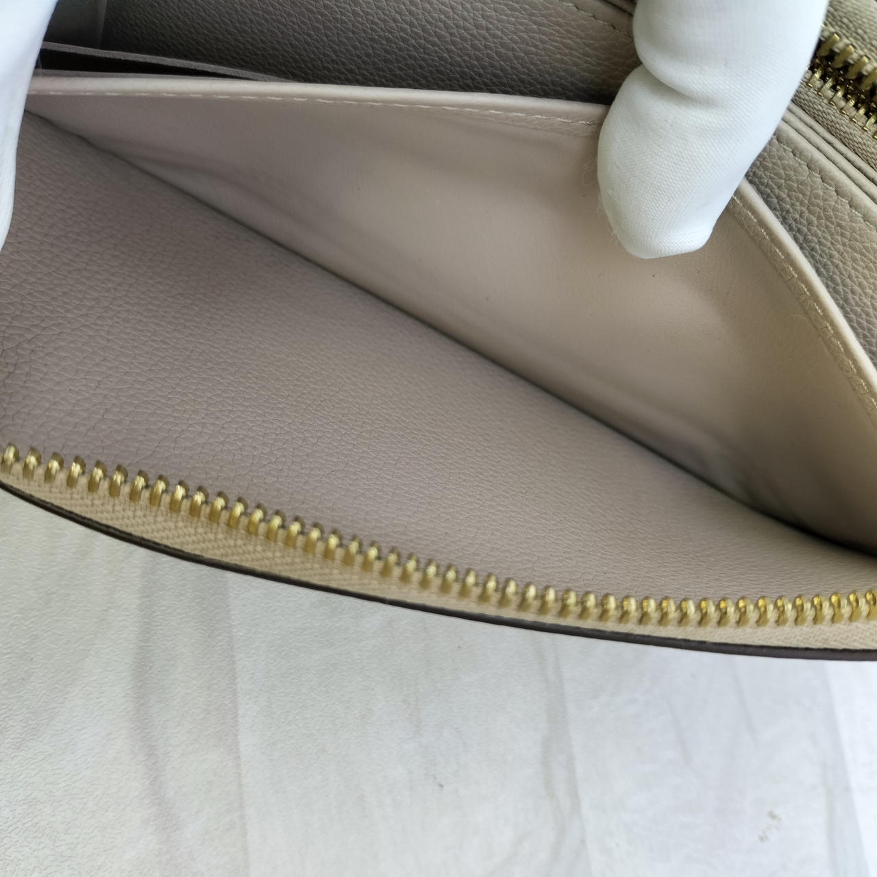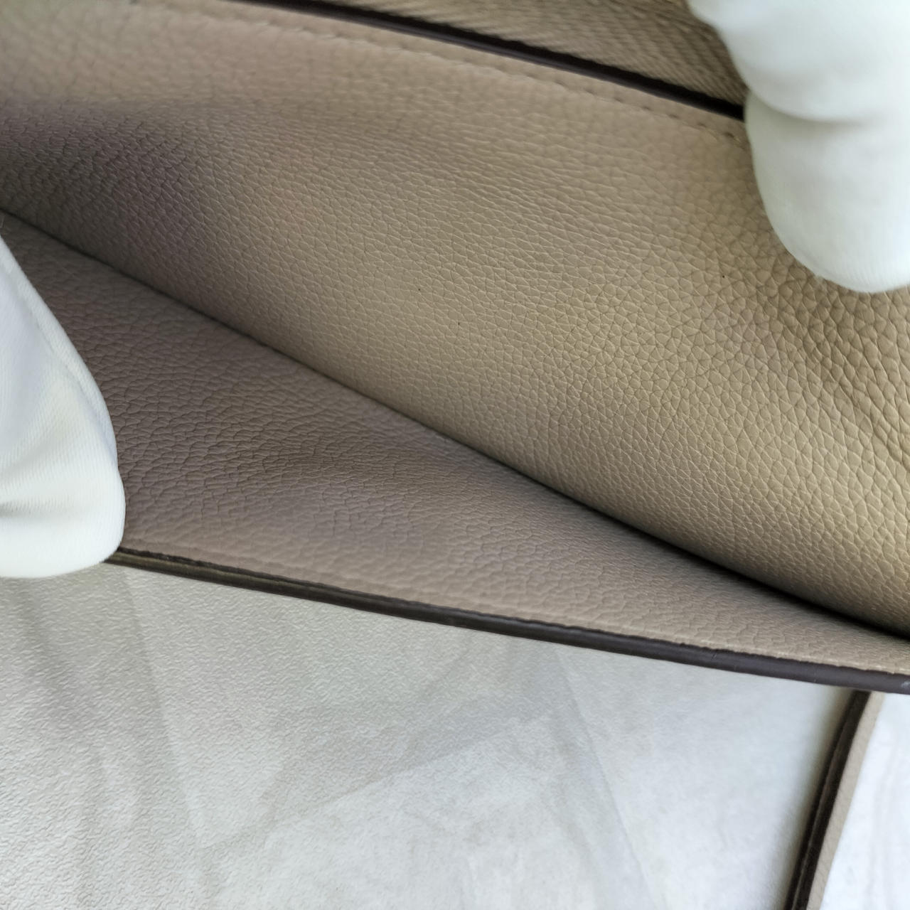 高品質なトリヨンレザー(カーフレザー): 生後6ヶ月以内の仔牛の革を使用したトリヨンレザーは、きめ細かく、柔らかく、それでいて耐久性にも優れています。手に取るたびに上質な素材感を堪能できます。