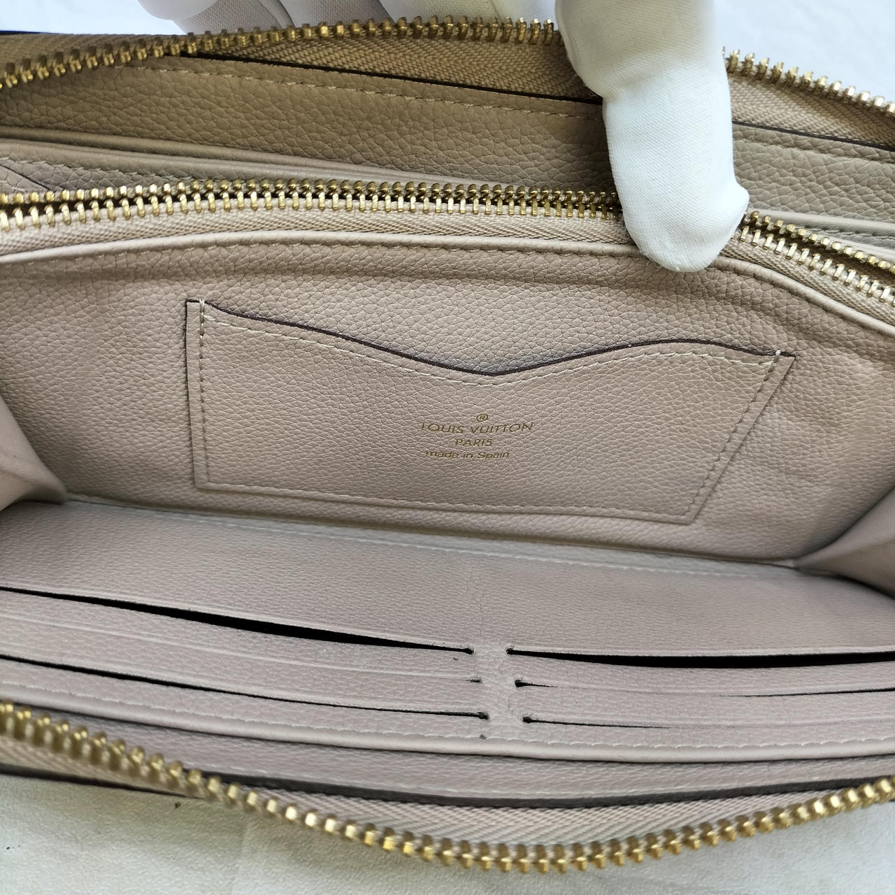アイコニックなLVロゴ: フロントにあしらわれた控えめながらも存在感のあるLVロゴが、ブランドのステータスをさりげなく主張します。