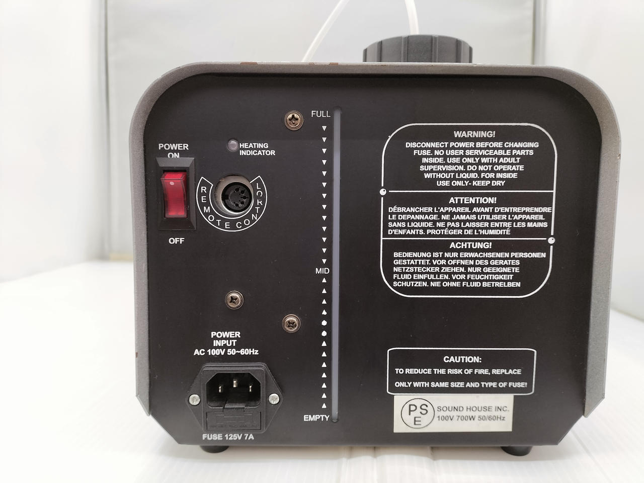 通常のもくもくしたスモークではなく、うっすらと霧状にスモークを漂わせます。ステージ上にまんべんなくスモークを漂わせたい時にピッタリです。 |
