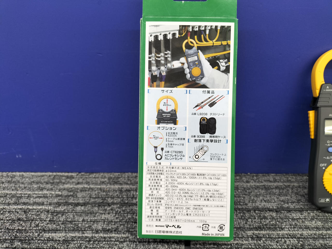 軽さ100G、薄さ16MMのポケットサイズ。電流、電圧、抵抗、導通チェックが1台で測定可能 |