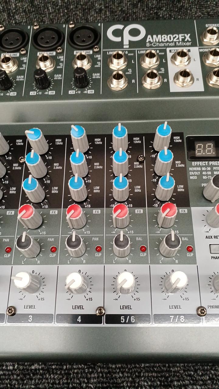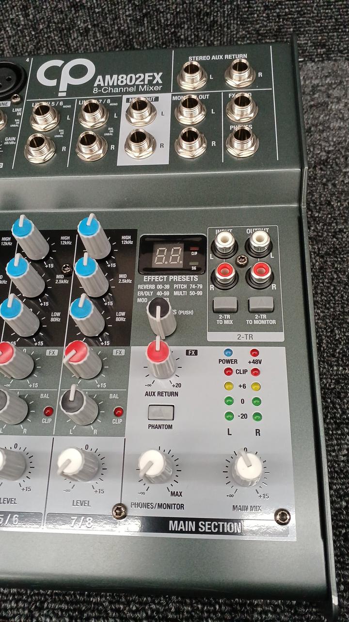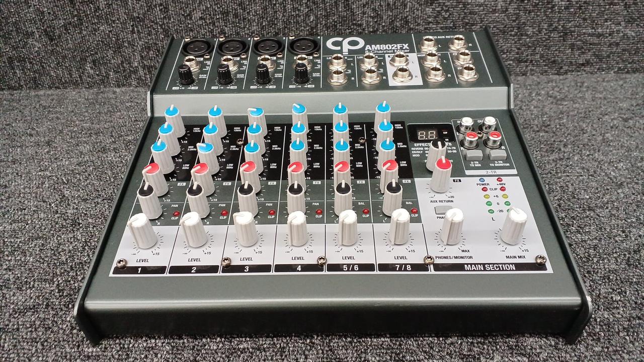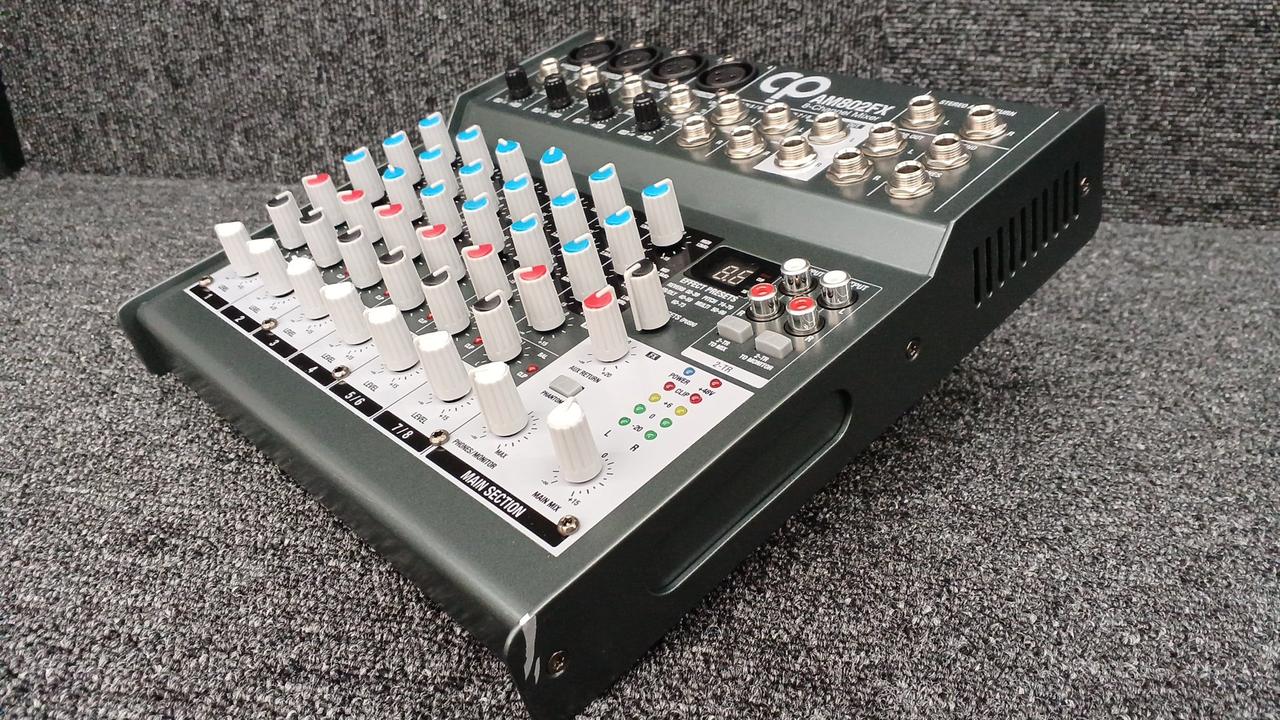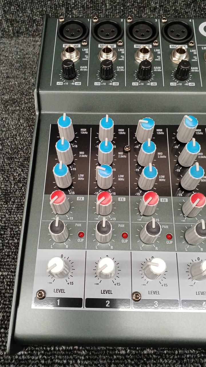 モノラルチャンネル数:4 ステレオチャンネル数:2 ファンタム電源:+48V EQ:3-band High: 12kHz、MID: 2.5kHz、LOW 80Hz USB I/O:× |