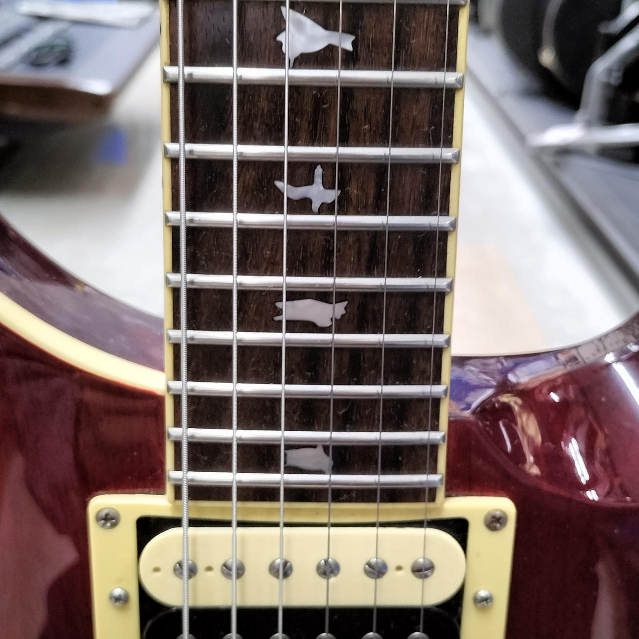 ネックやや順ぞり、トラスロッド回していません、フレット残7割程 |
