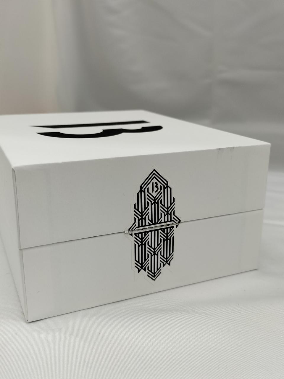箱に黒い汚れがあります。 |