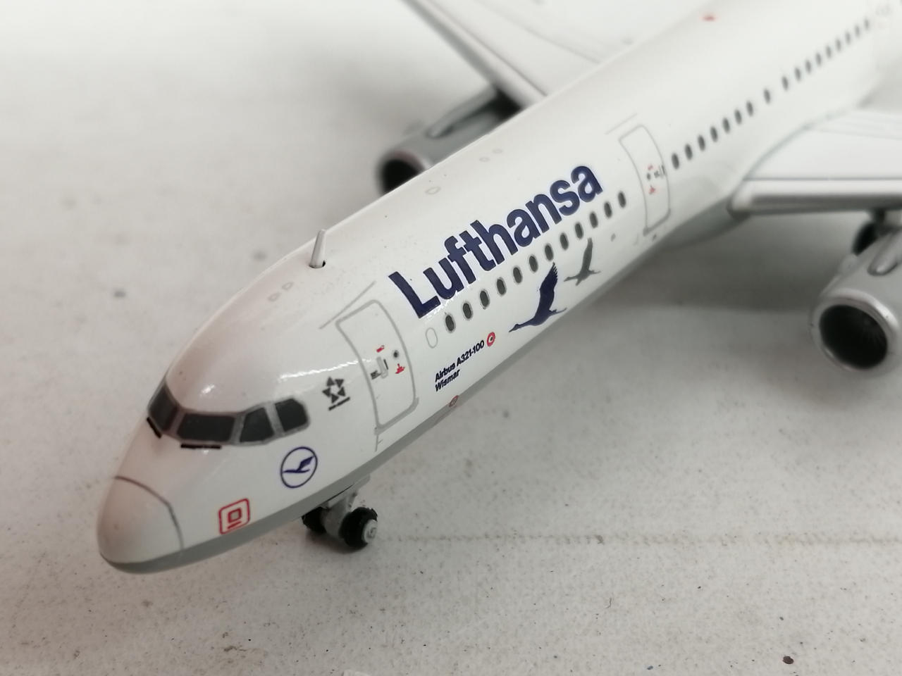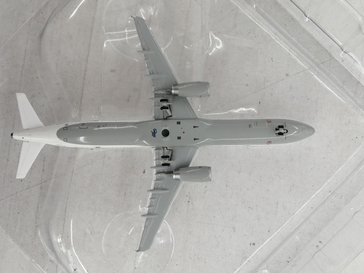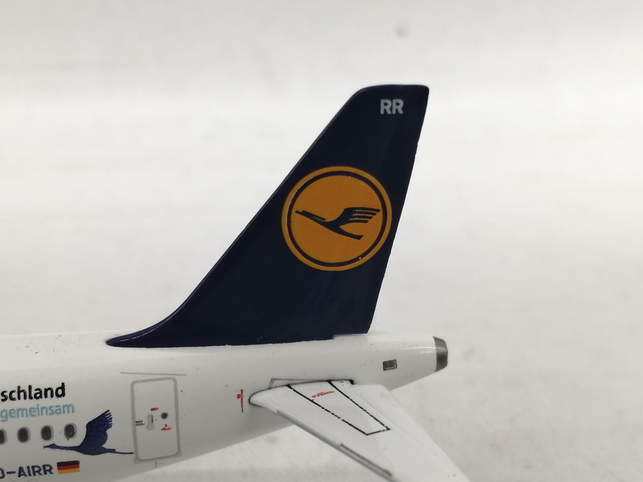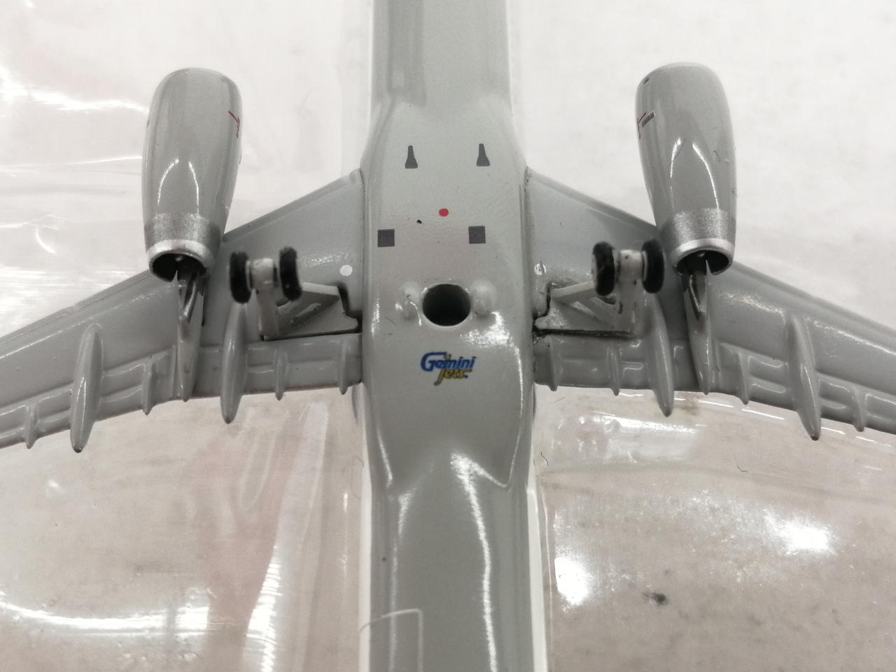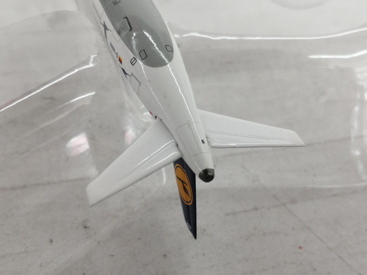機体の尾翼のマークの部分に小さな白い点状の塗装剥げがみられます。 |