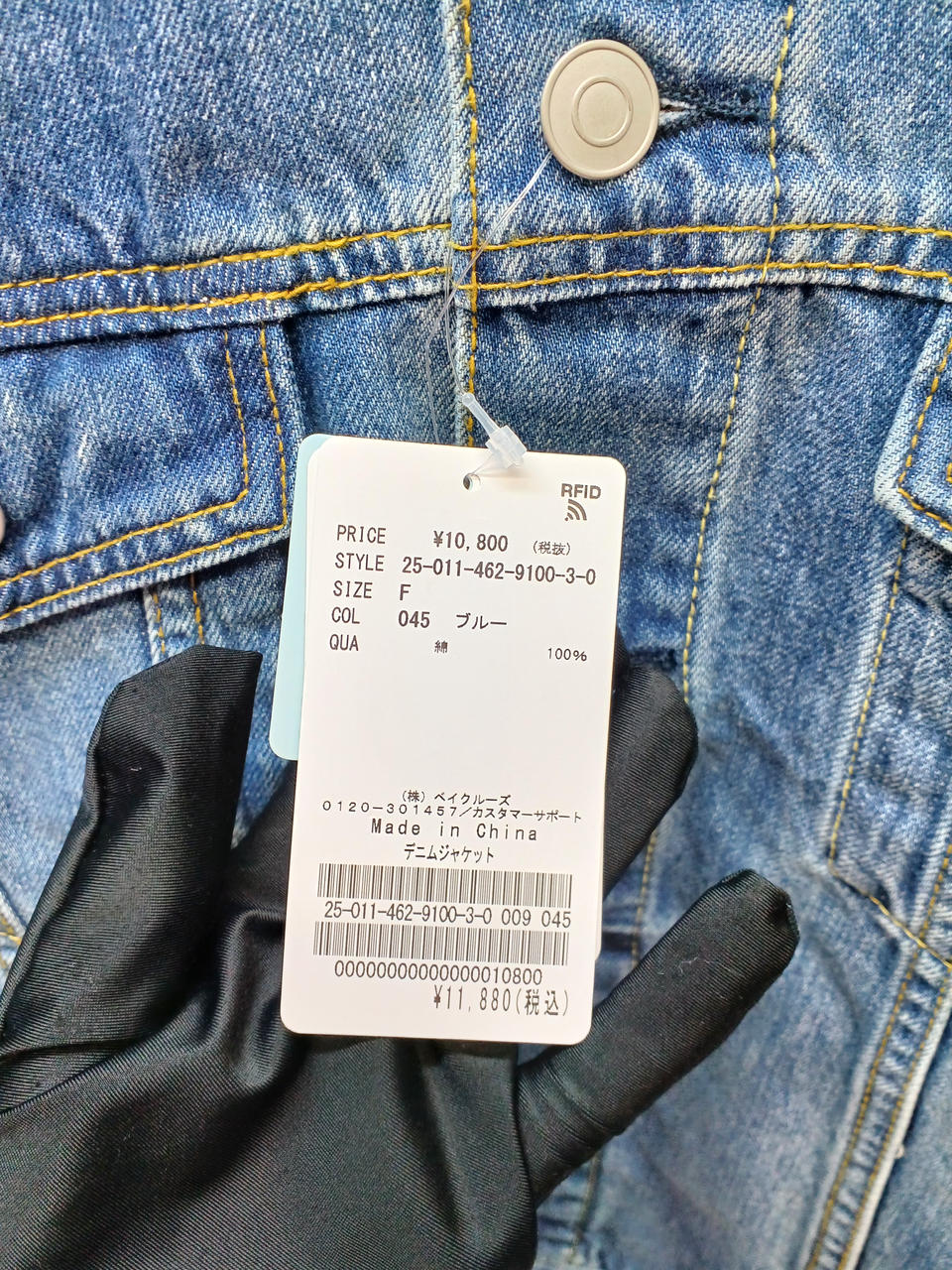 ノーカラーデニムジャケット