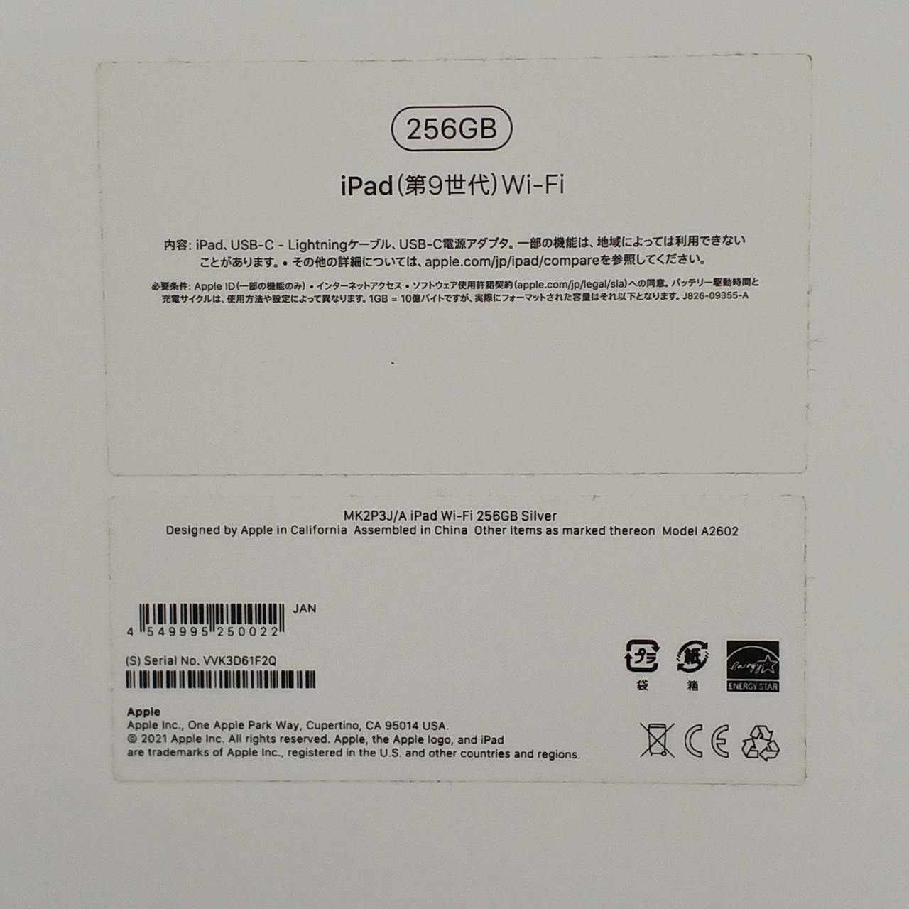 iPad 10.2インチ 第9世代 Wi-Fi 256GB ios:18.3.1 |