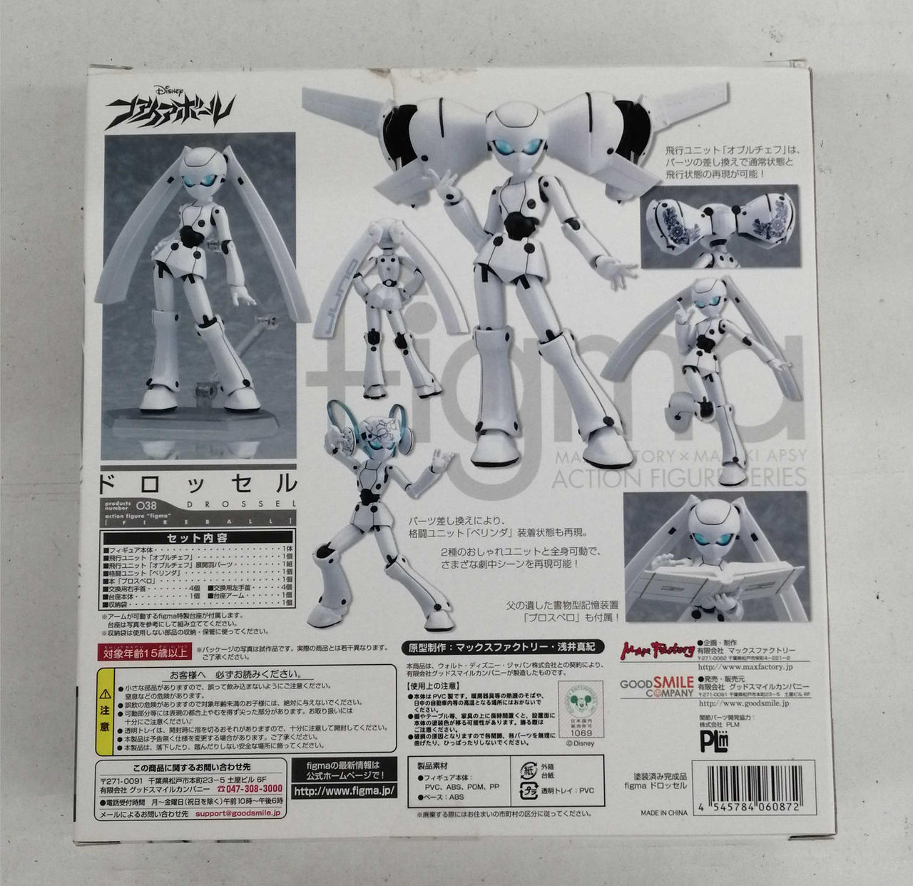 ドロッセル本体の左足が少し色あせているように見えます。耳の裏側に少し塗装の剥げが見られます。箱に傷みあり。 |