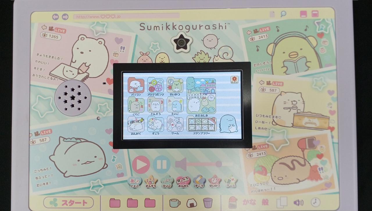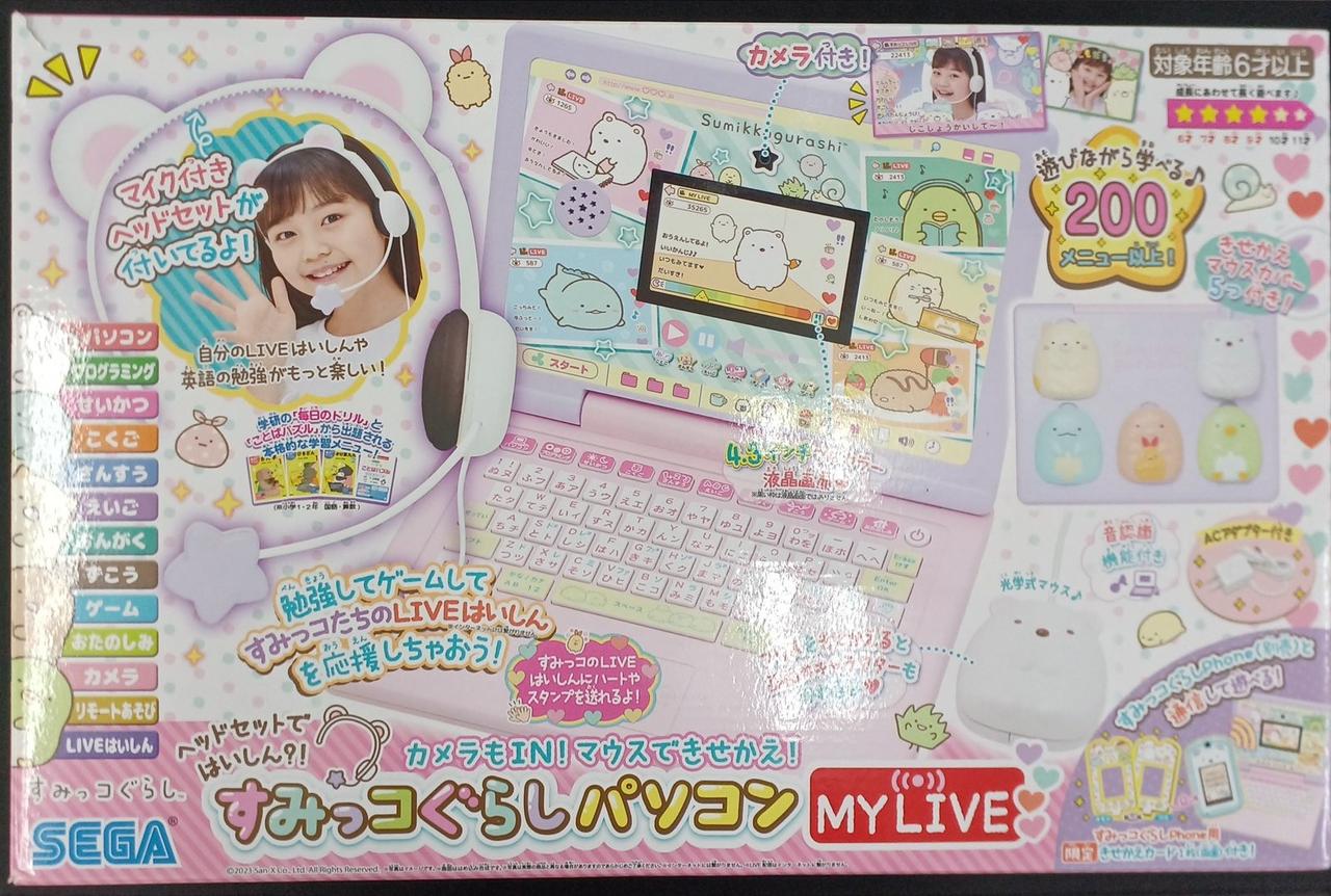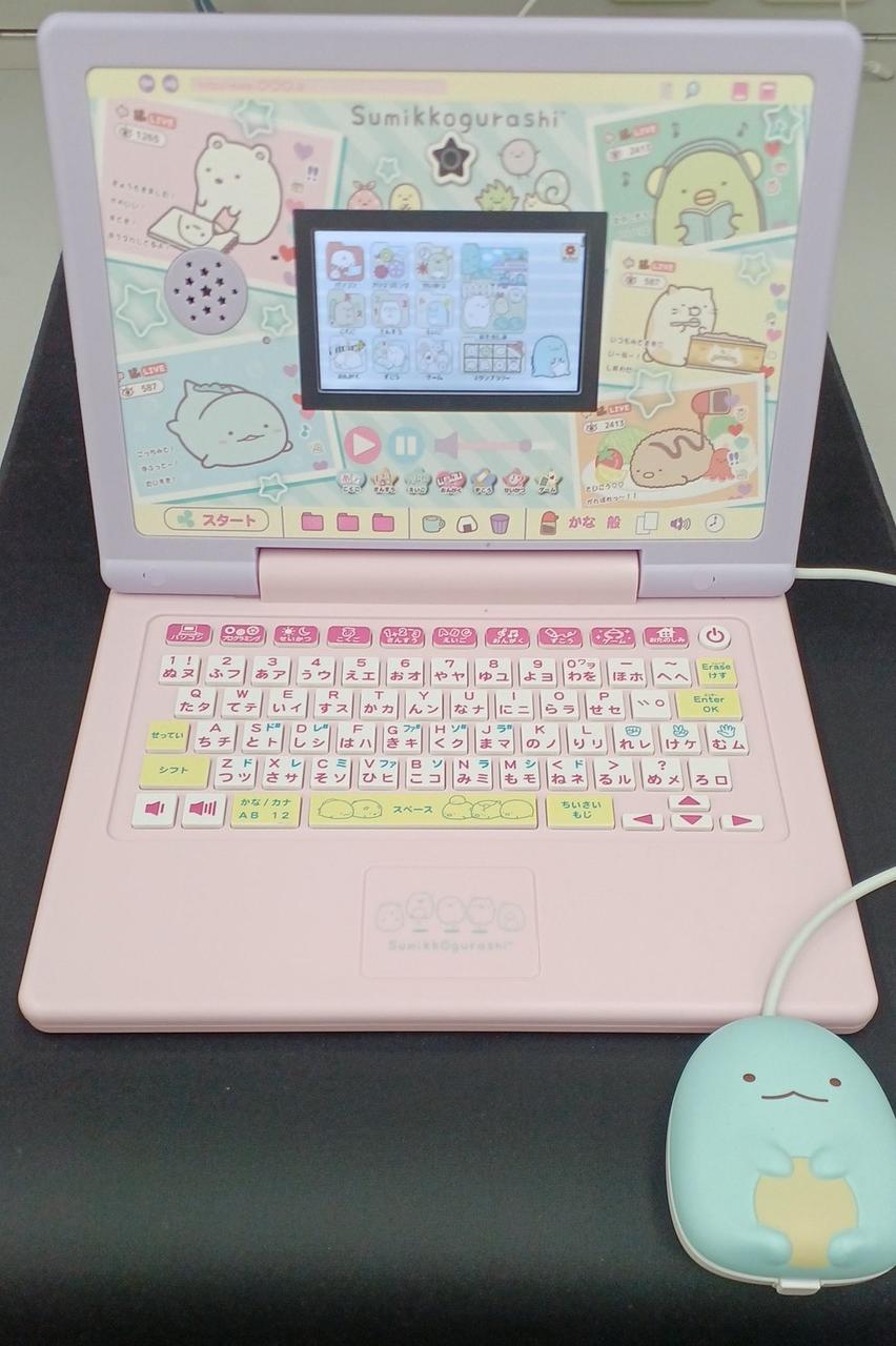 すみっコぐらしの子ども用パソコン玩具です。しろくまマイク付きヘッドセットが付属されて遊びもお勉強もいっぱいで、すみっコたちと楽しくパソコン操作を覚えられます。すみっコぐらしphone(別売り)と連動して遊ぶこともできます。 |