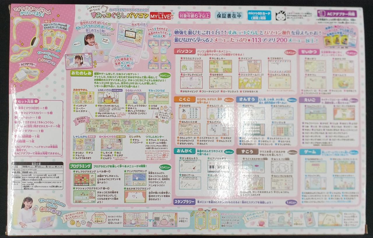 セット内容:箱・パソコン本体(マウス付き)/きせかえマウスカバー×5/しろくまマイク付きヘッドセット/取扱説明書/専用ACアダプター/すみっコぐらしphoneきせかえカード(別売りすみっコぐらしphone用)×1 |