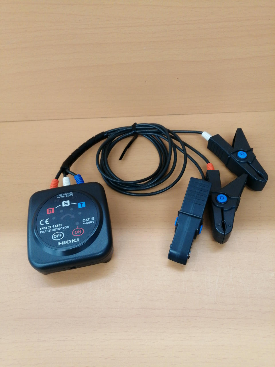 金属非接触で安全作業ができるワイドクリップタイプの検相器 |