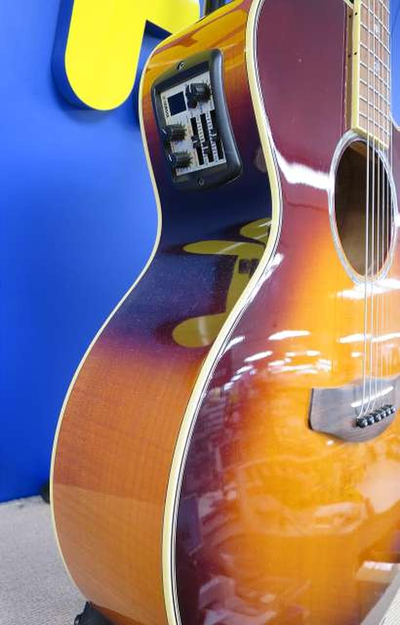 トップ:スプルース サイド、バック:メイプル ネック:ナトー 指板:ローズウッド トラス:締め方向残り90度程度 ネック状態:良好 フレット残:6,7割 ブリッジ:浮きなし ボディ裏下部塗装割れ |
