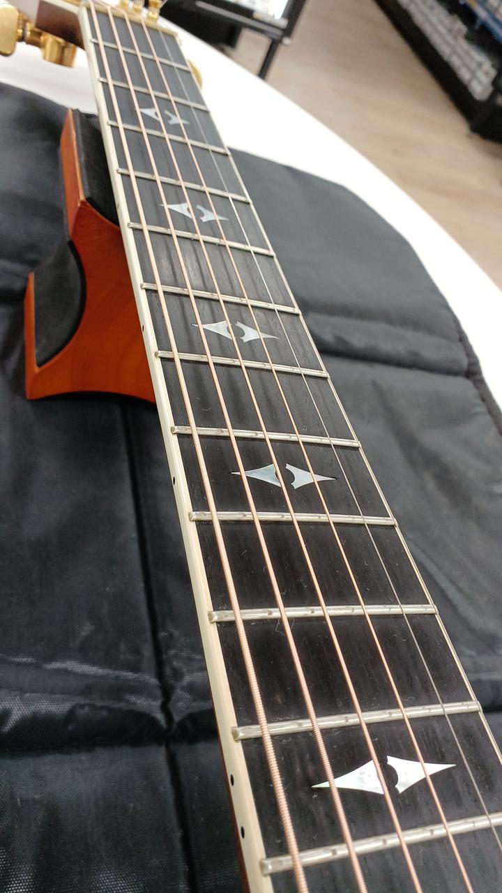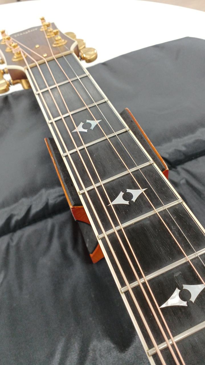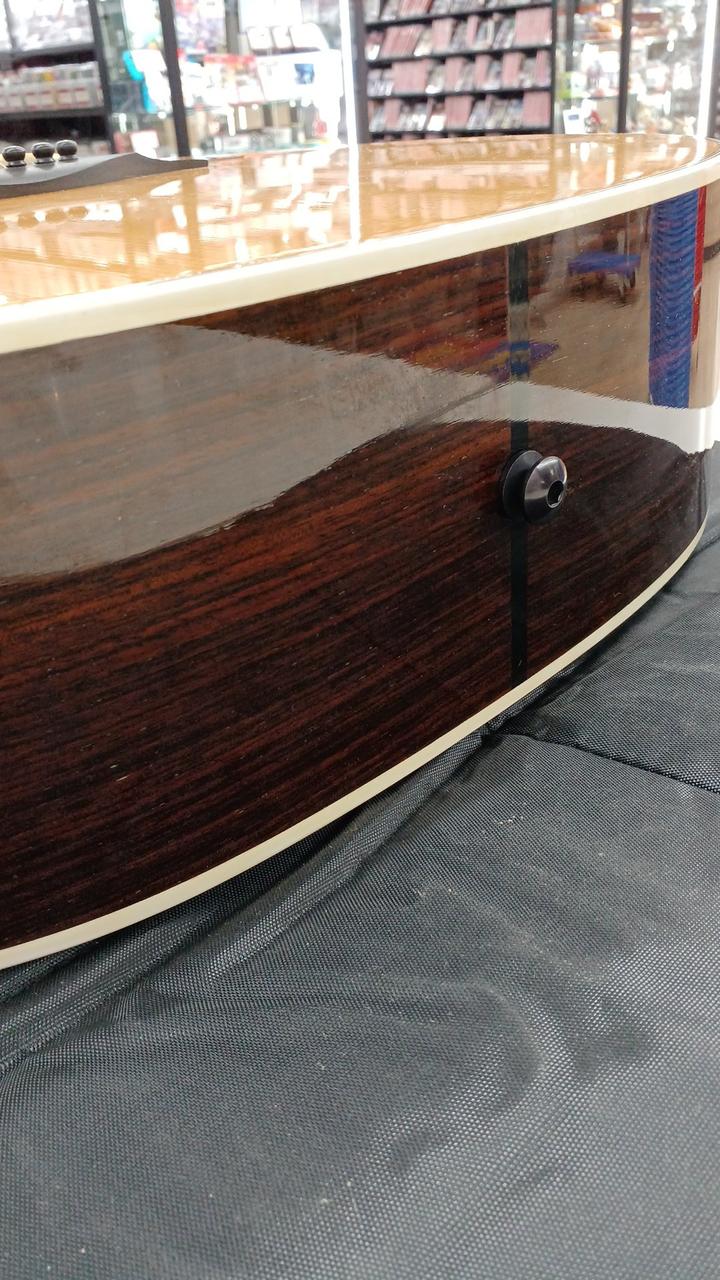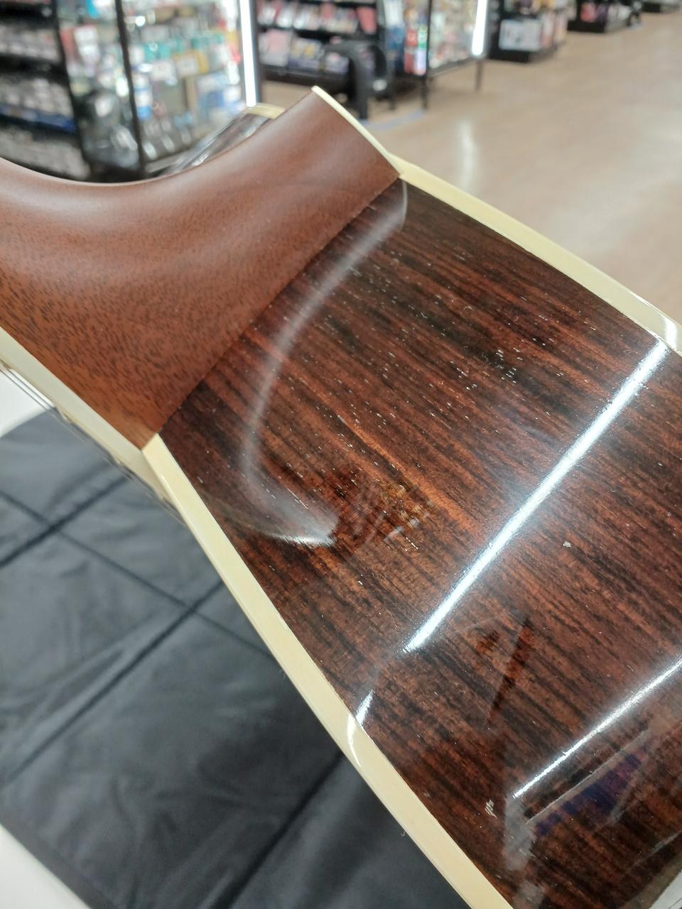 べっ甲柄ピックガードとさりげない高級感で上級モデルらしいルックスで、木材のグレードも高く雰囲気! |