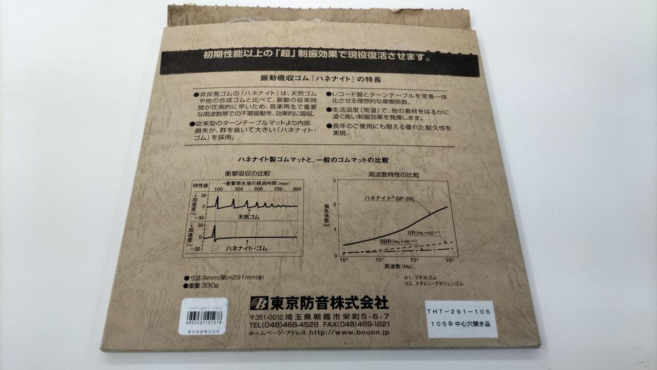 レコードプレーヤーの不要振動を抑え、ノイズを低減するゴム製マットです。 |