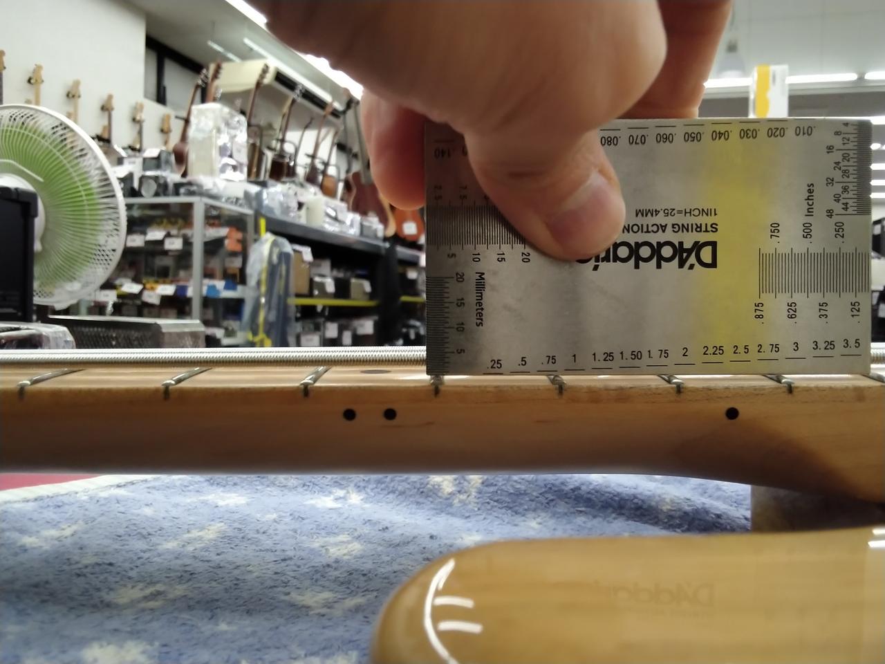 ※商品画像は、レギュラーチューニングの状態で撮影しています。トラスロッドもレギュラーチューニングの状態を基準に調整してあります。また、全てのポジションで演奏確認を行い、音詰まりによる音消えがないことを基準にセッティングしています。(低めの弦高のセッティングの為、『ネック寄りで強めにピック弾き』等、弦の振幅幅が大きい弾き方をされる際は、バズが出る可能性があります。この場合は、弦高を上げて調整くださいませ) 弦高の数値は、気候・ネックコンディション・チューニング・弦のゲージ等の要因で上下しますので、あくまでの参考値となります。また塗装・木工・研磨切削等、不可逆的なカスタムで品物へ手を加えられる場合は、保証対象外となる場合がございます。 |