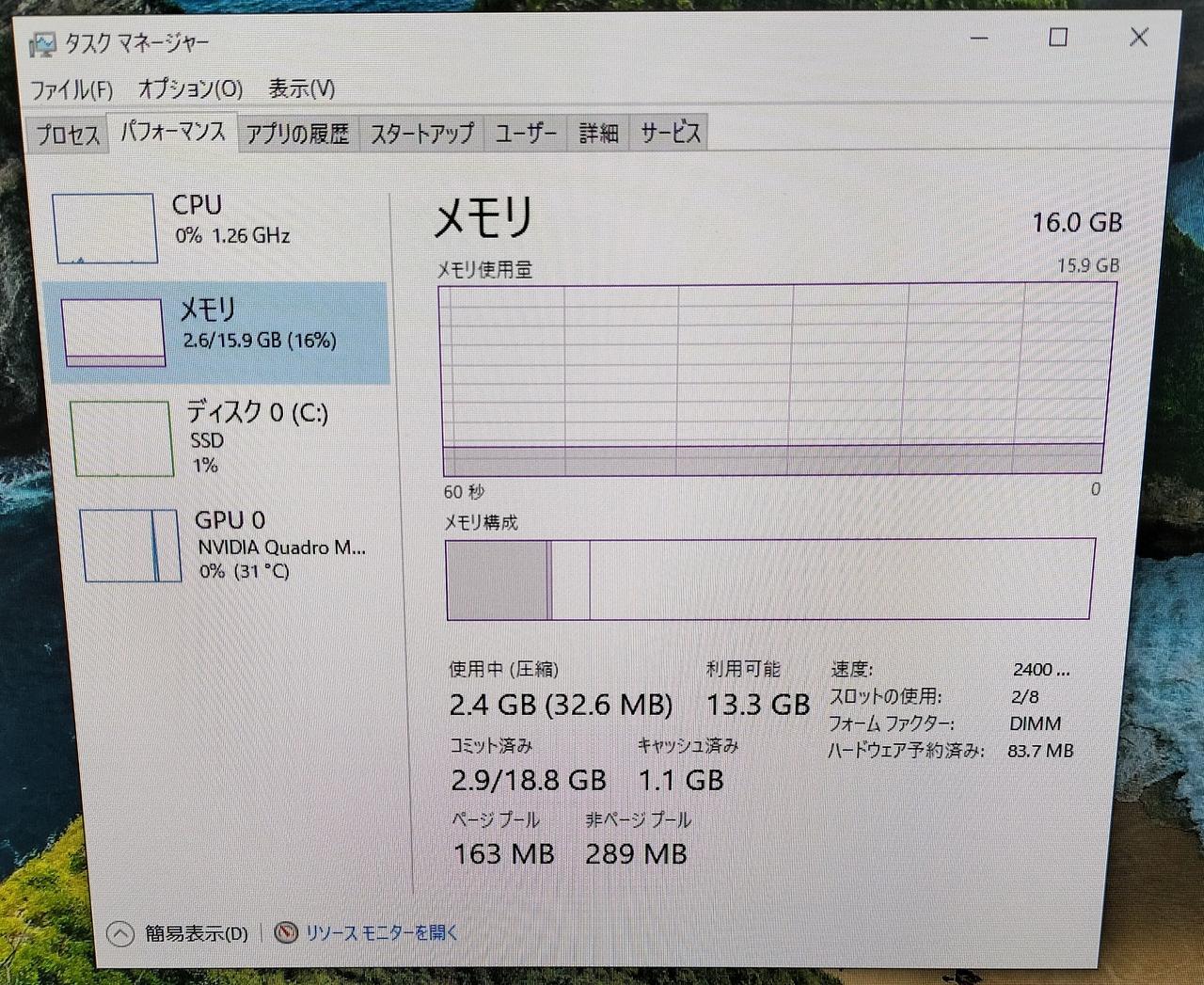RAM:16GB ストレージ:SSD512GB GPU:NVIDIA Quadro M2000 12GB |