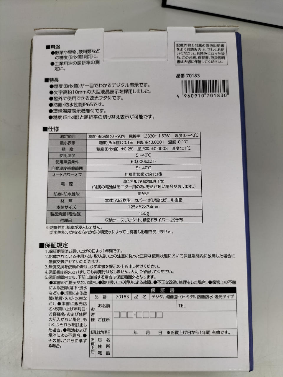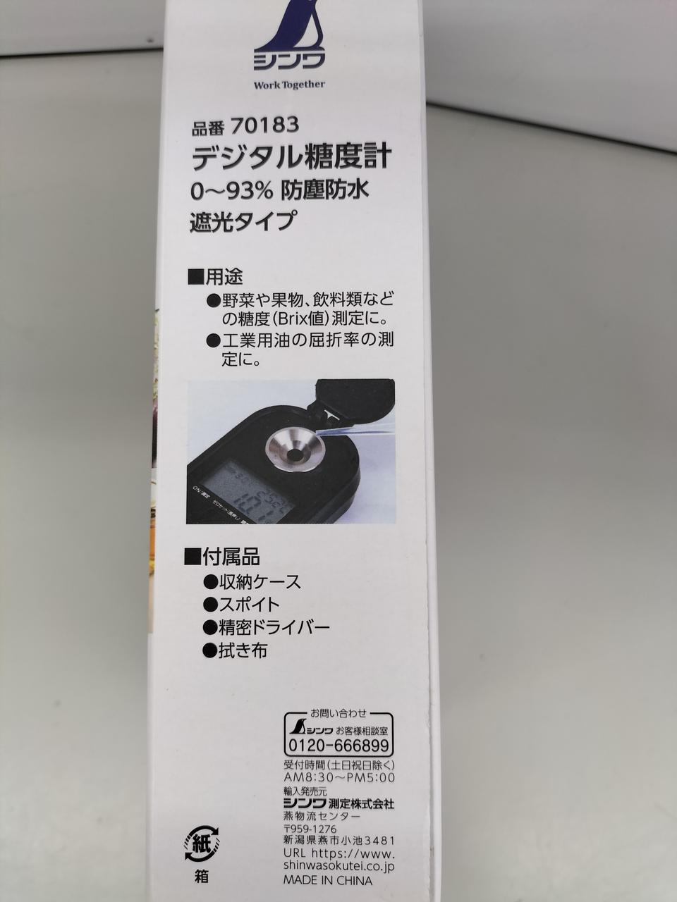 測定範囲 糖度(Brix値)0~93% / IP65で使用後の水洗いが可能です