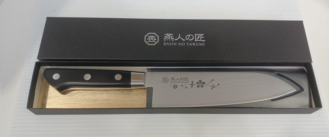 燕人の匠 霞流し割込(口金付)三徳包丁 170mm