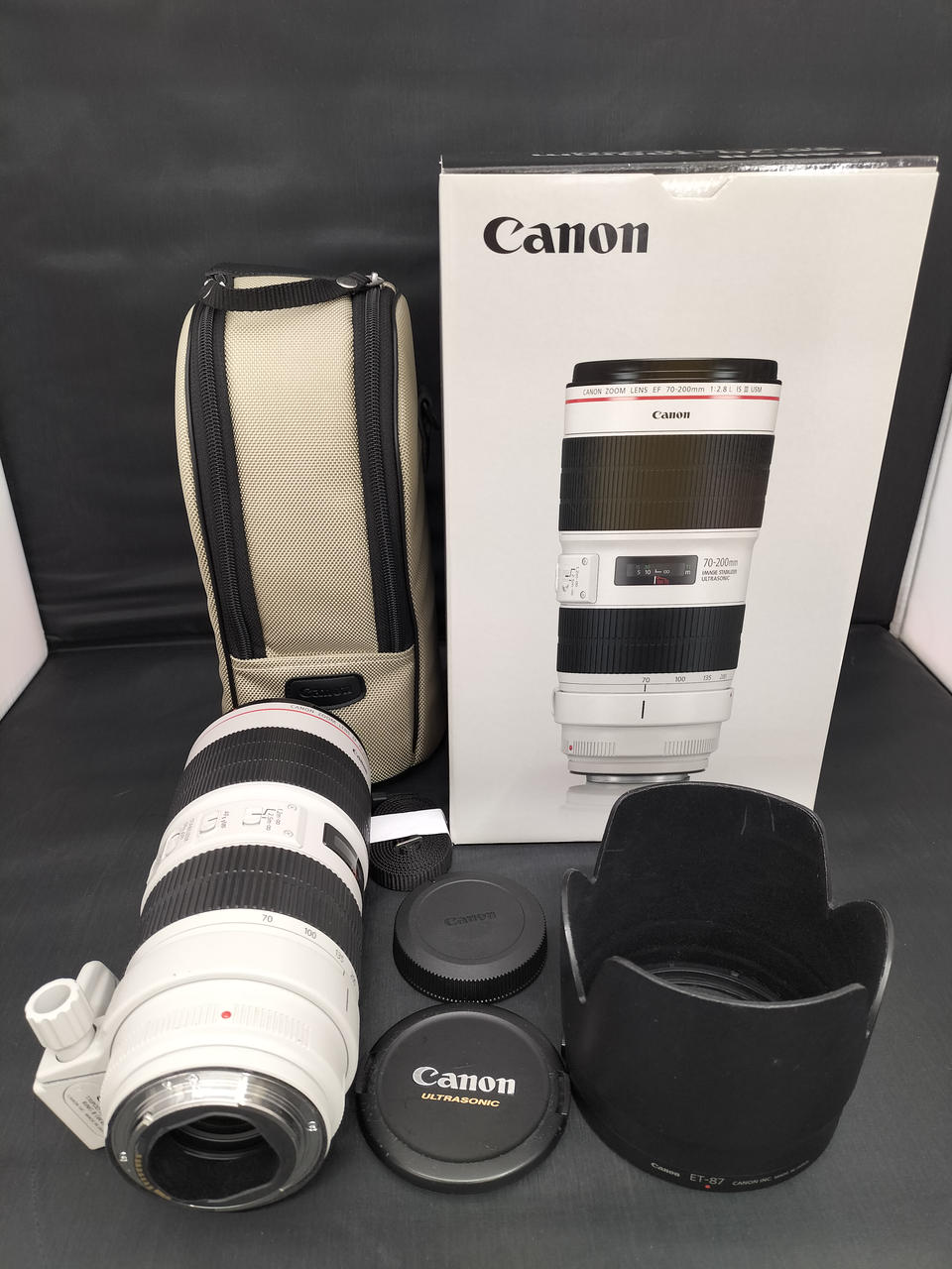 付属品:箱、収納ケース、フード(使用感あり)、前後キャップ(使用感あり) |