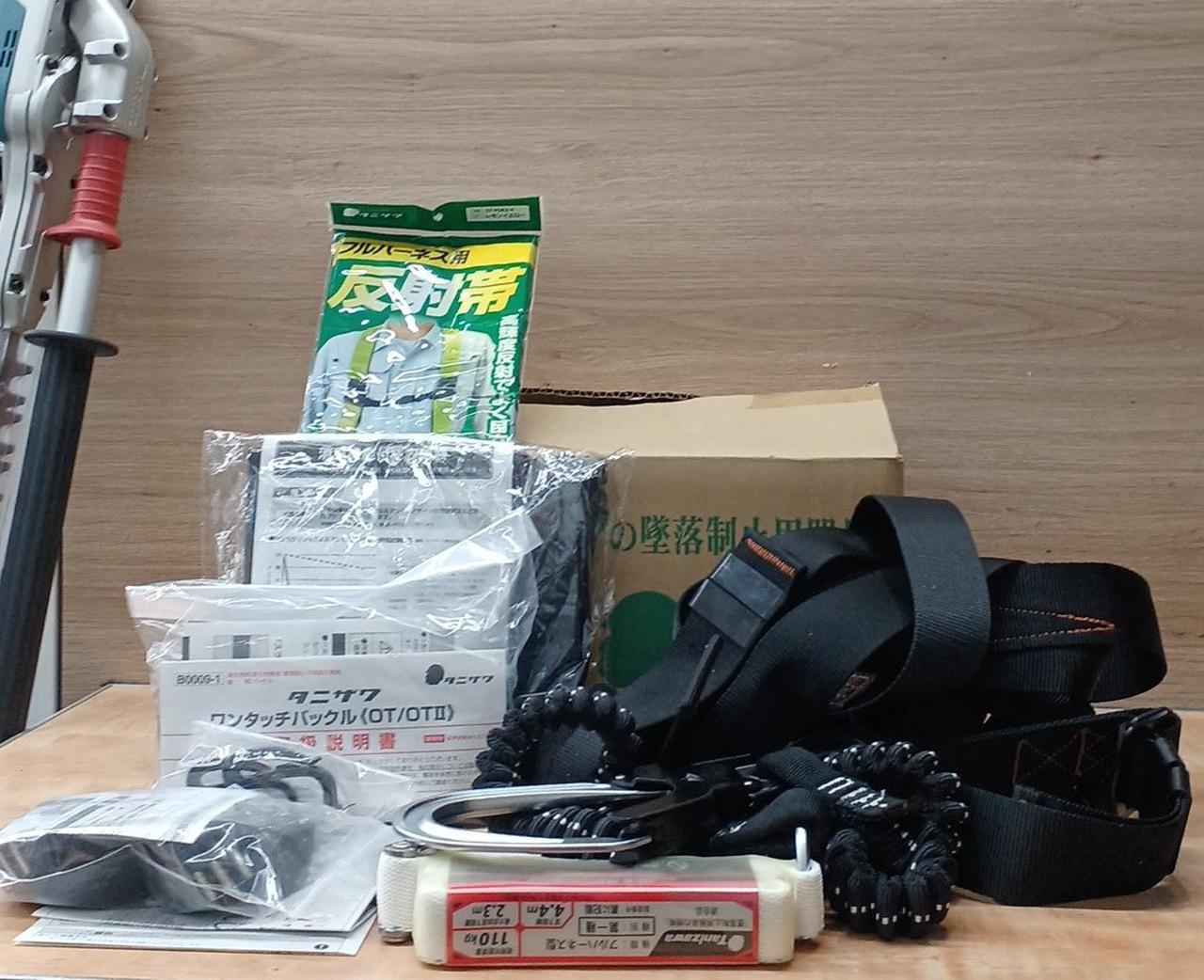 内容物: ・タニザワX型フルハーネス(腿ベルトV字) ・伸縮式ダブルランヤード |
