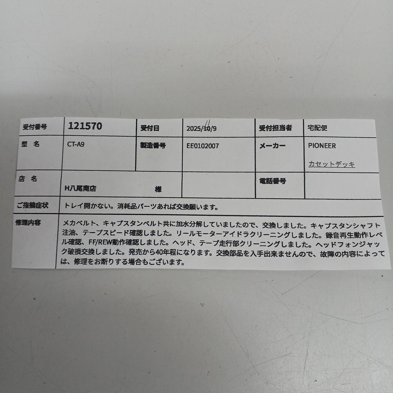 2025年11月に、ハードオフ新潟紫竹山オーディオリペアセンターにてオーバーホールメンテナンス済 |