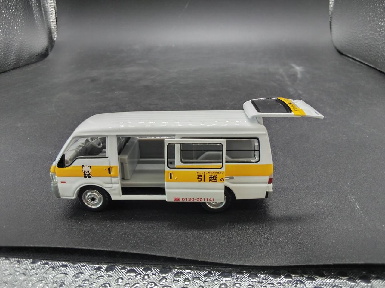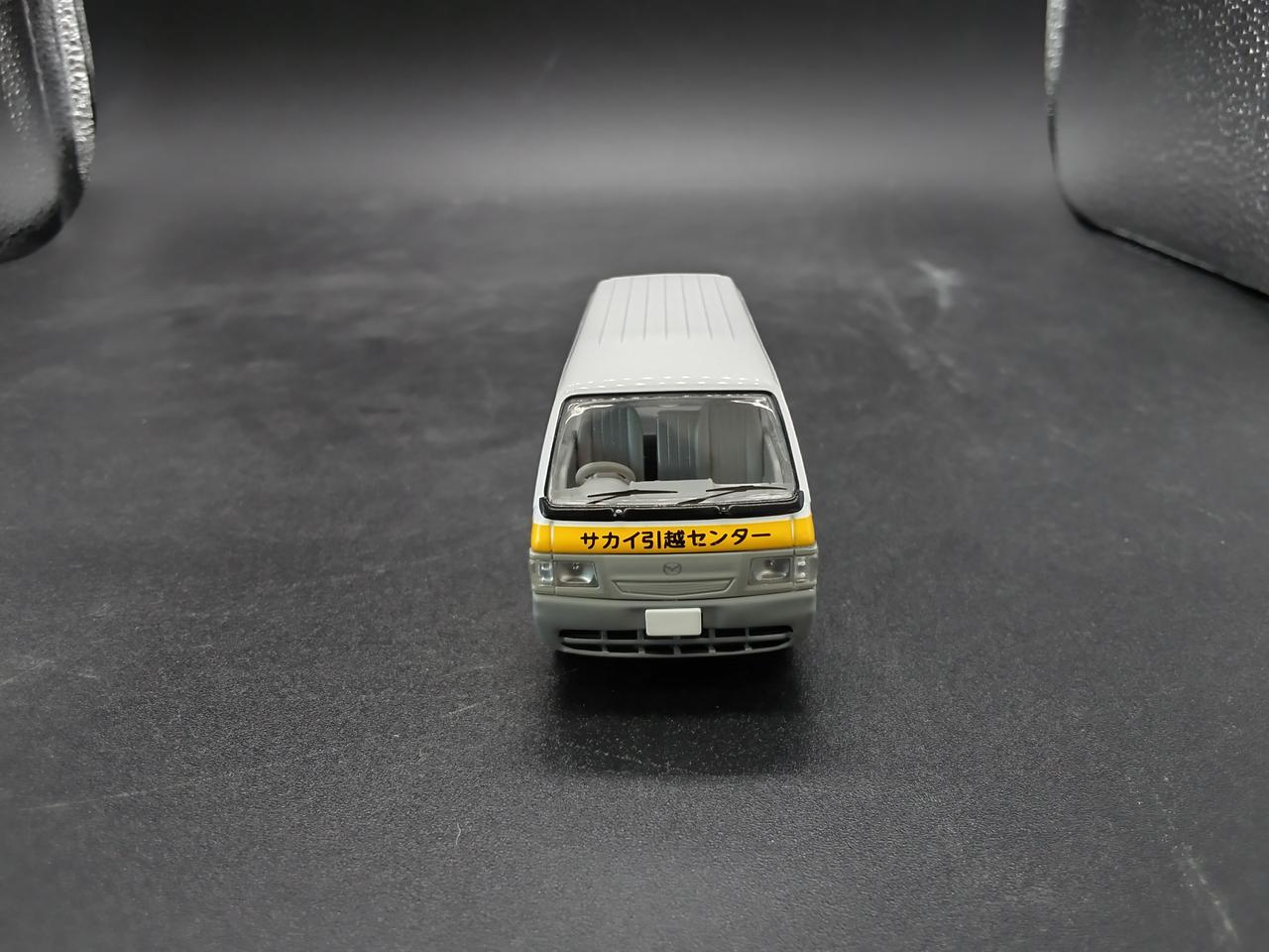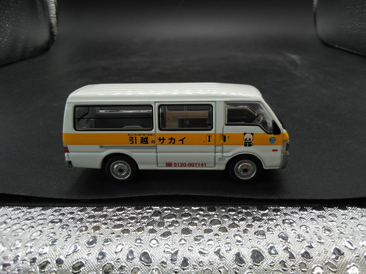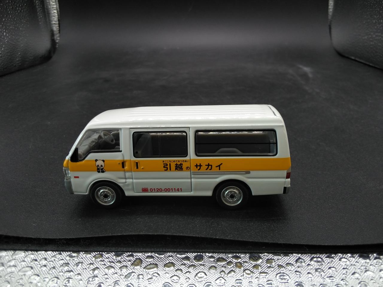 好評のボンゴブローニイに白いボディに黄色のストライプ、そしてパンダのマークで全国でおなじみの『サカイ引越センター』仕様が登場です。