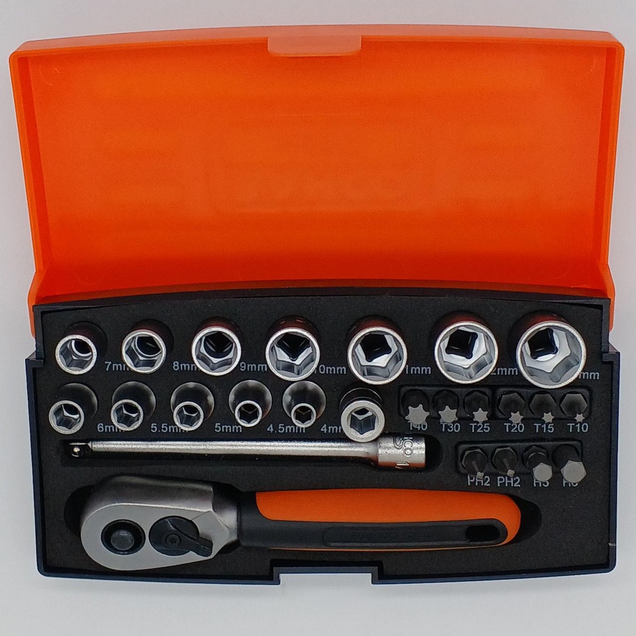 1/4レンチ差込角のソケットレンチスターターキットです。